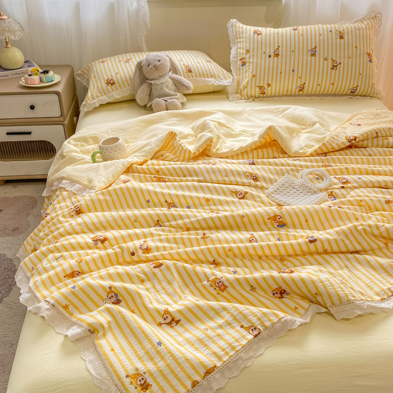 商品名称:(总)仟网汇 2026新款云感木棉皱皱纱全棉花边款夏被四件套