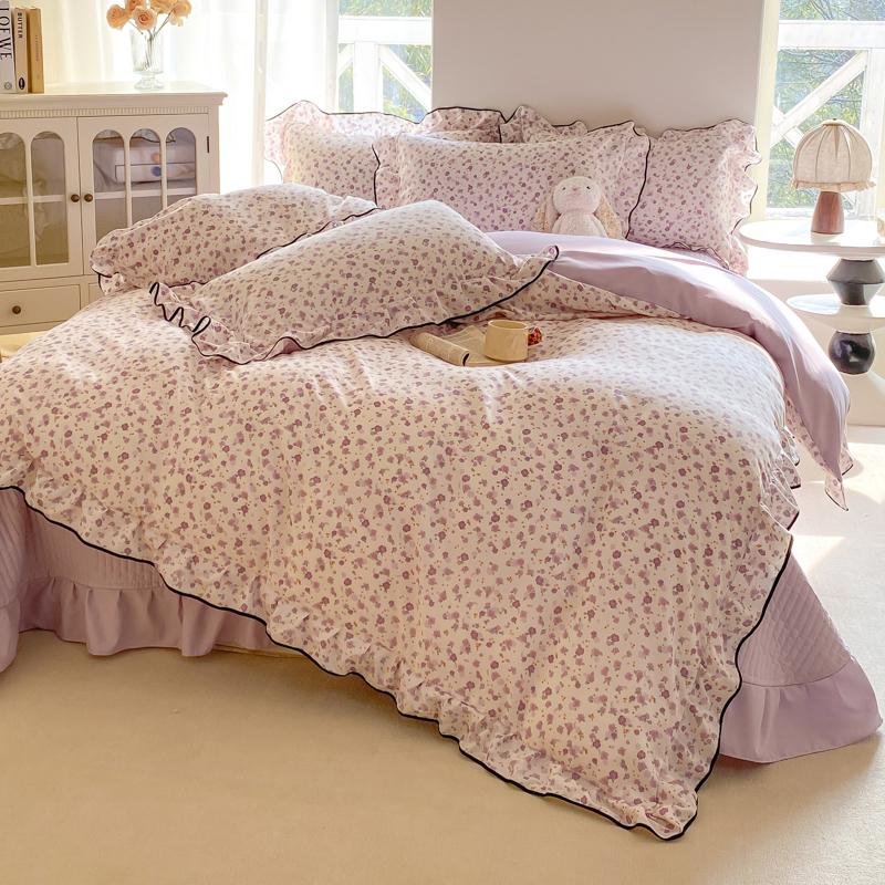商品名称:仟网汇 2026新款A类赫本针织双层纱床盖四件套床盖夏被四件套 小紫花
