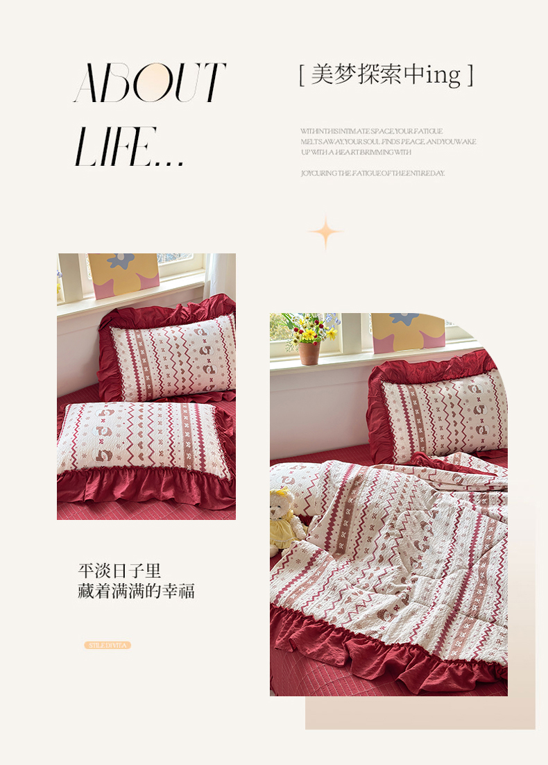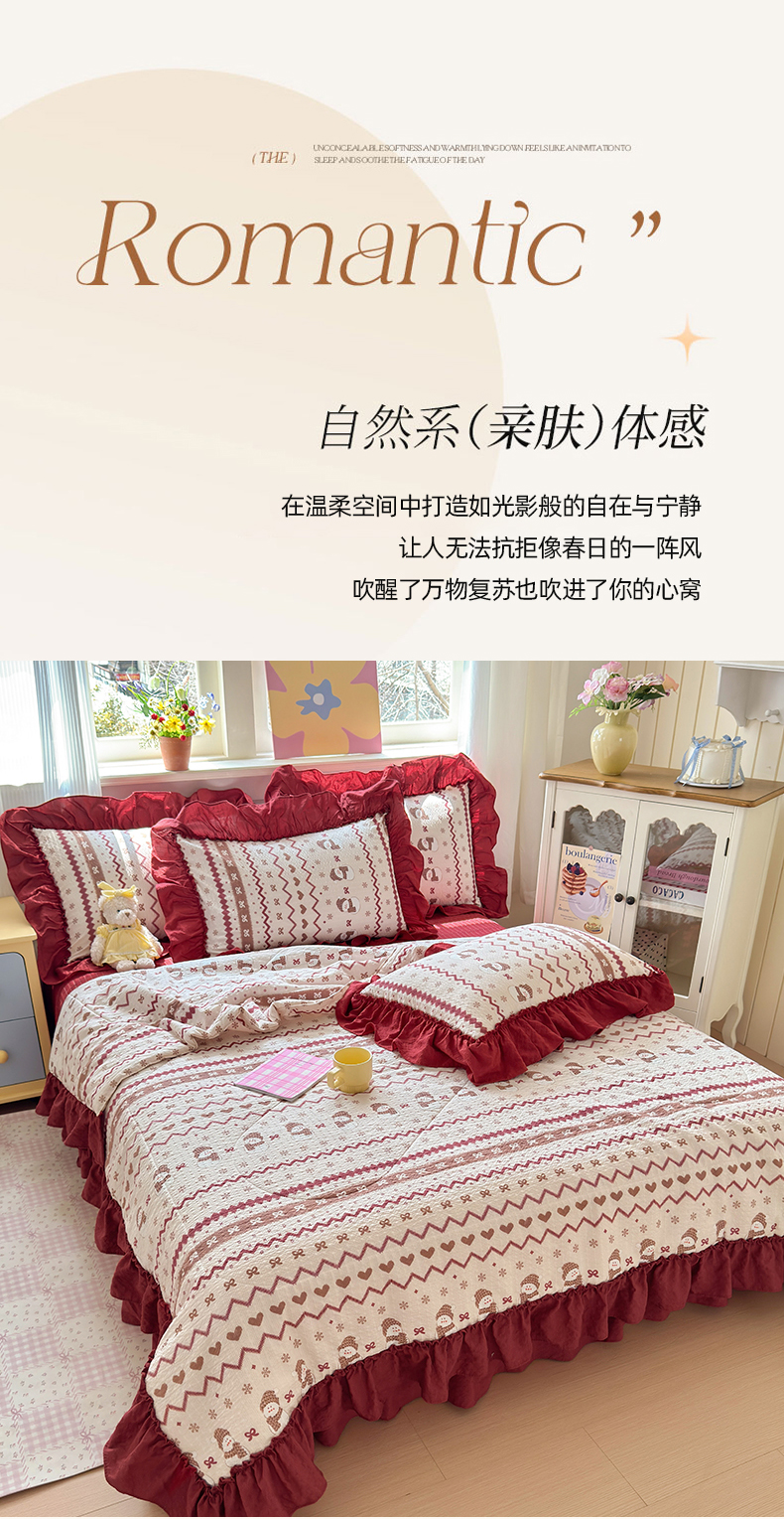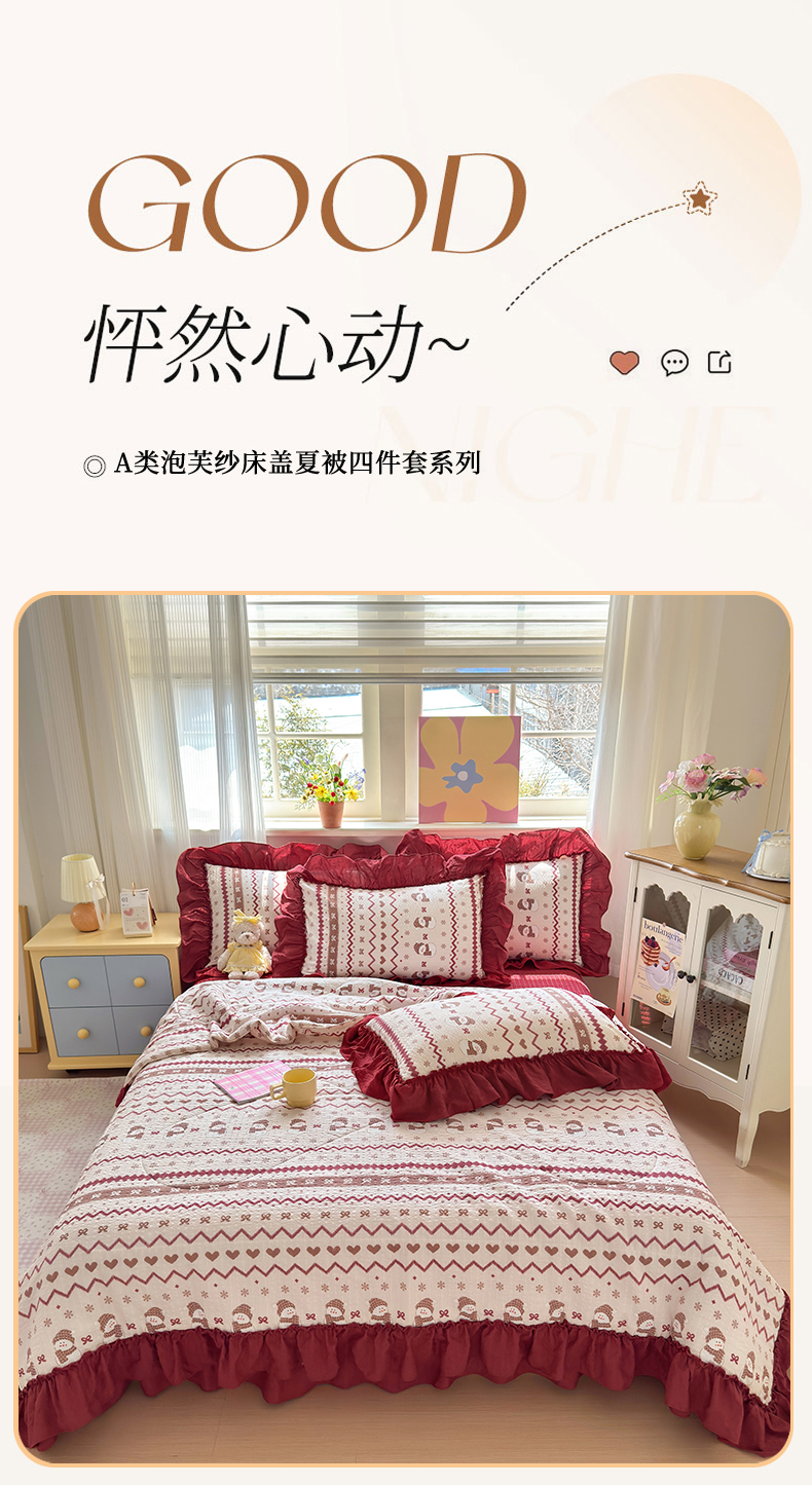 当前位置: 91家纺网 > 商品网购 > 床品套件 > 四件套 > 夏被四件套 > 禾沐 2026新款云感泡芙棉床盖夏被四件套AA款(夏被款) 红色小雪人