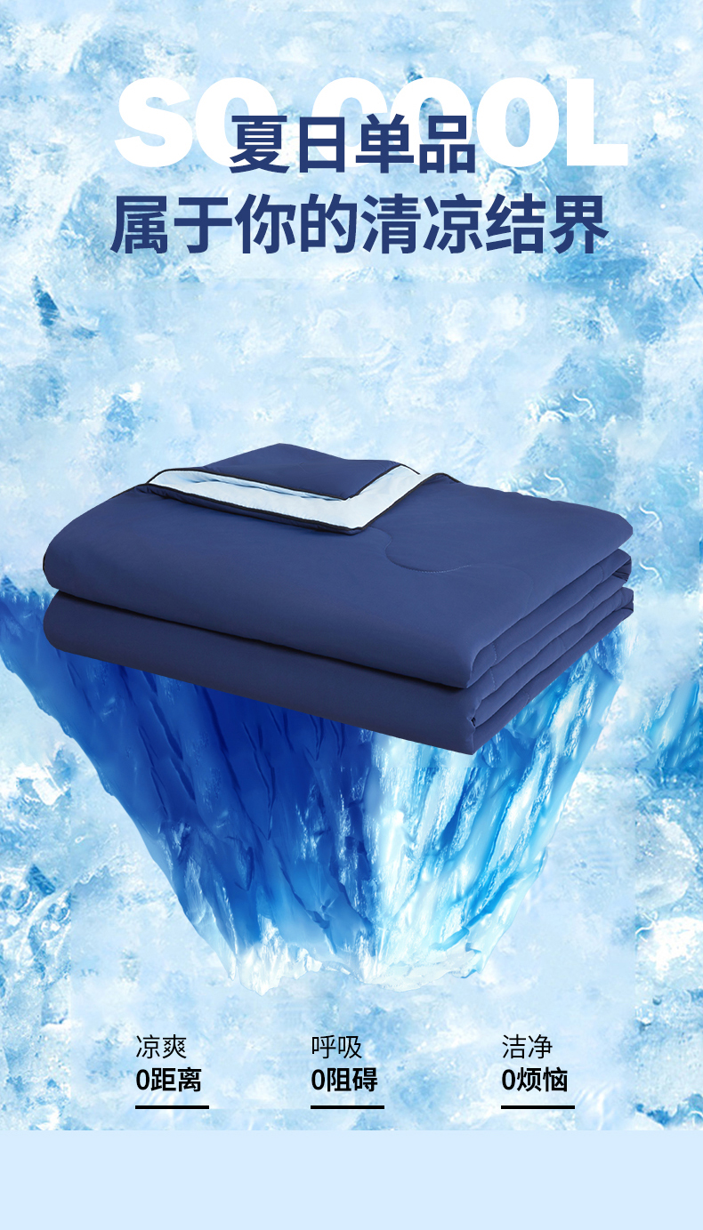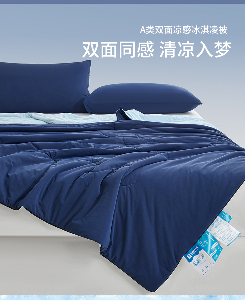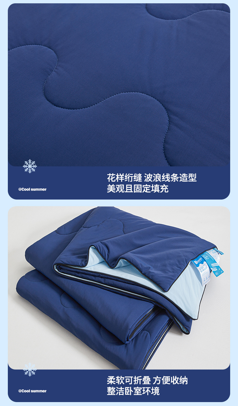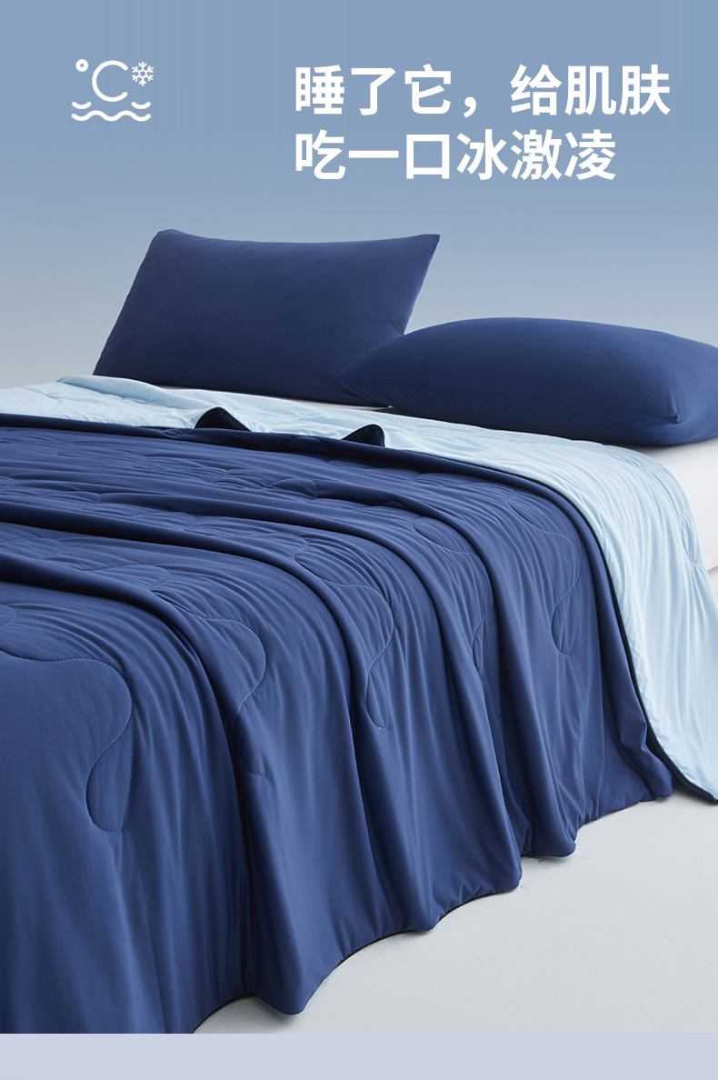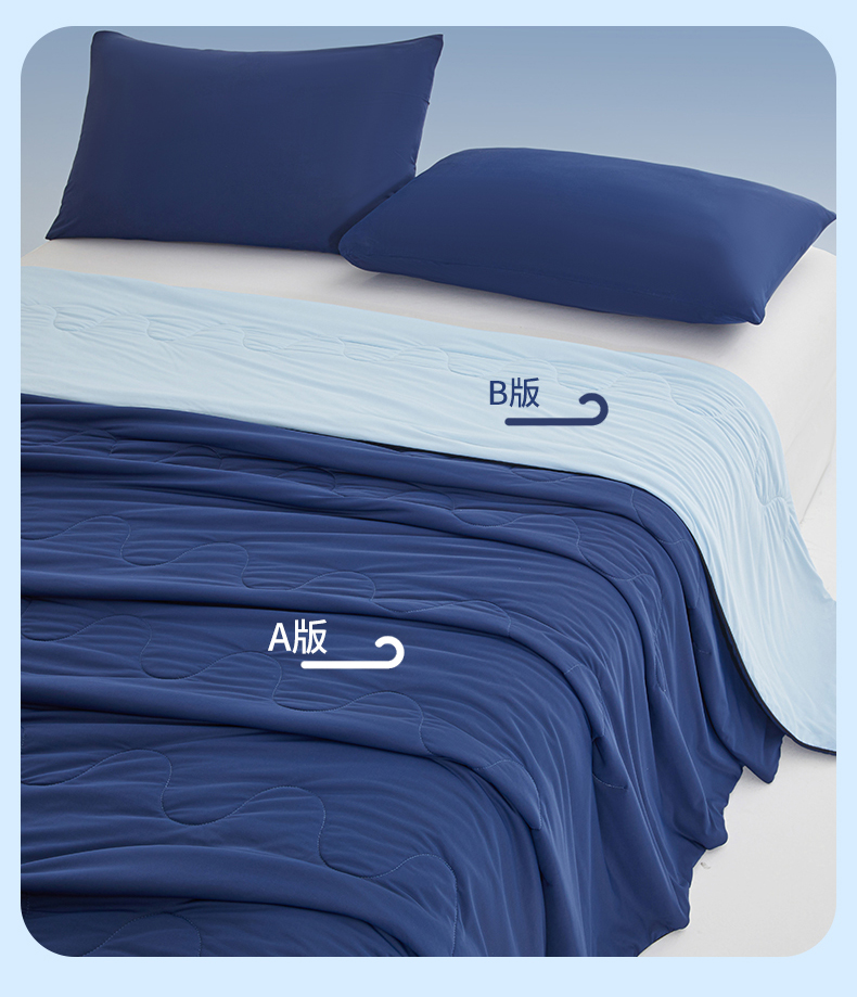小禹仔家纺 2026新款氨纶凉感印花夏被 藏青拼天空蓝