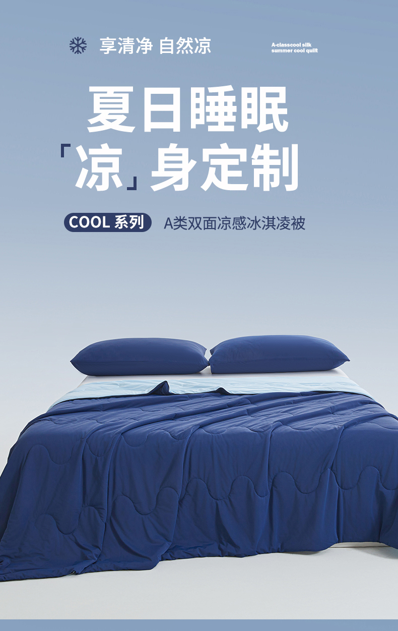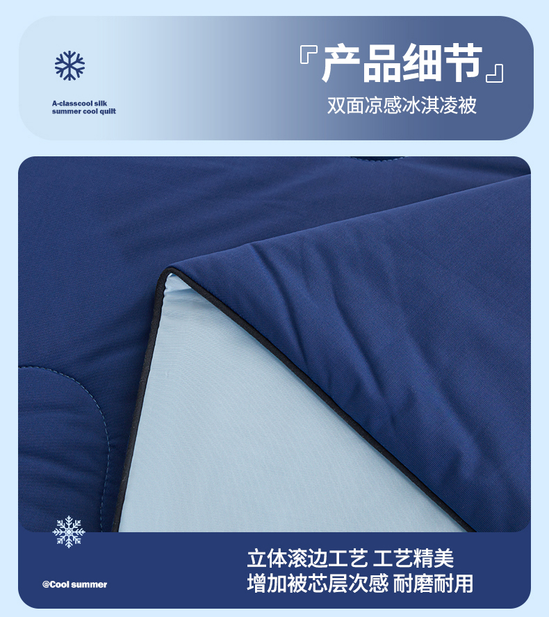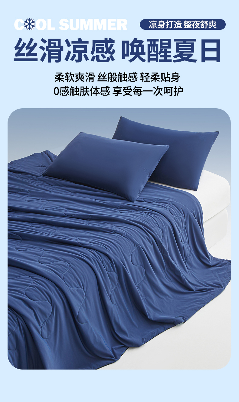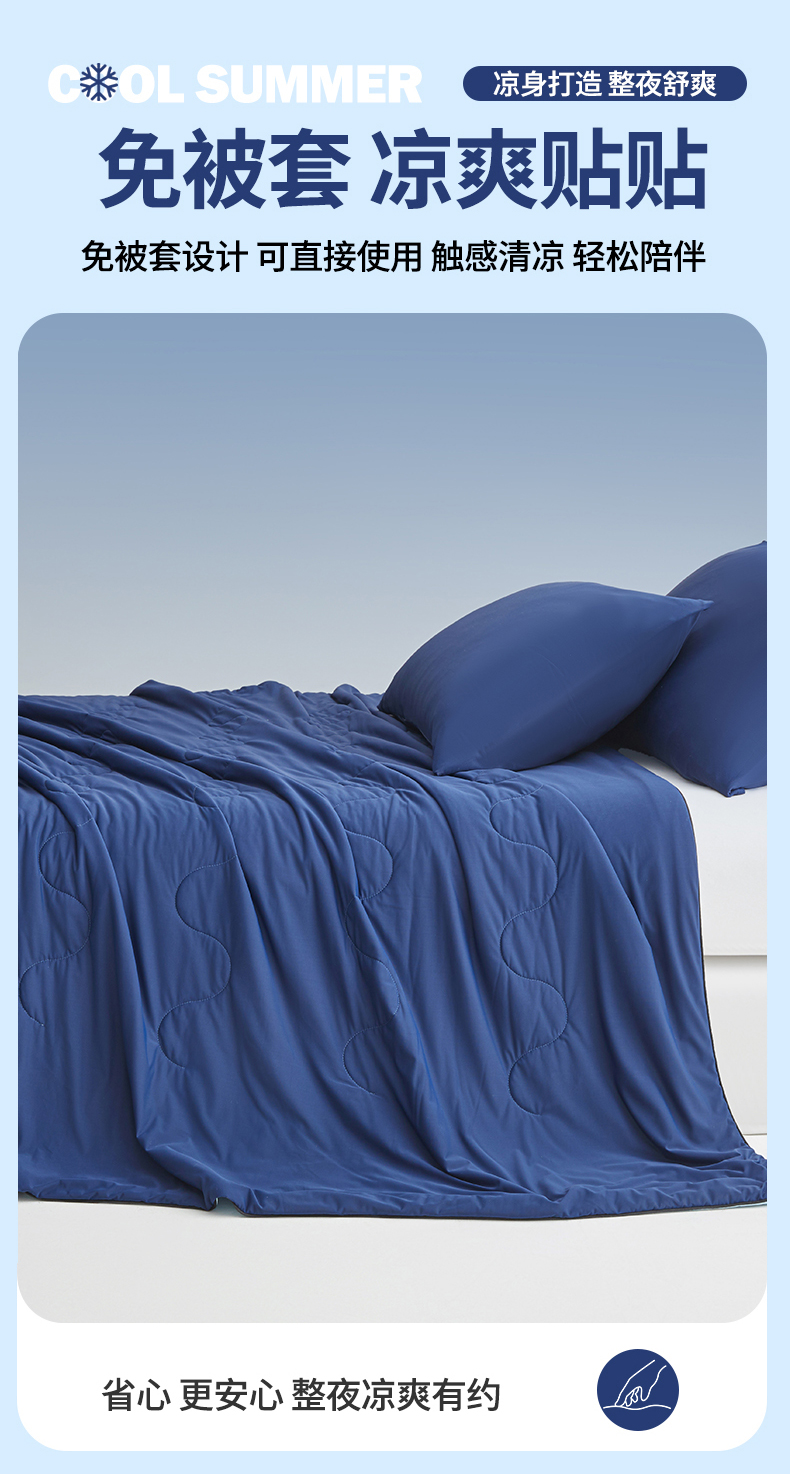 小禹仔家纺 2026新款氨纶凉感印花夏被 藏青拼天空蓝
