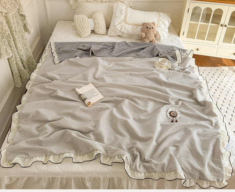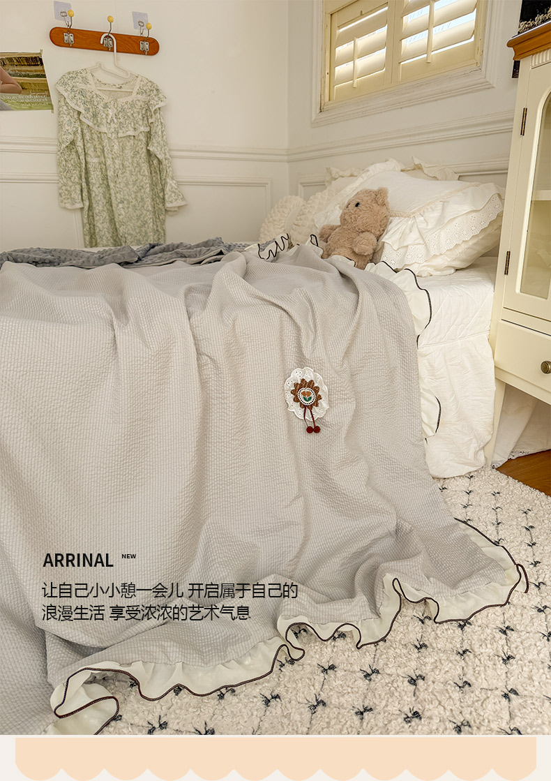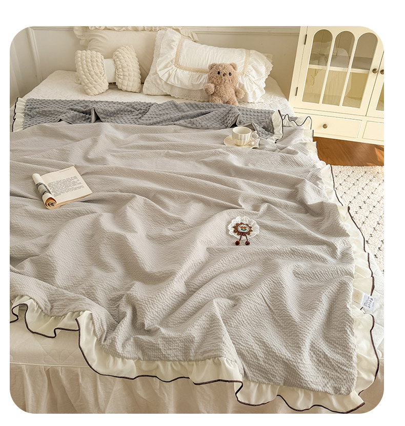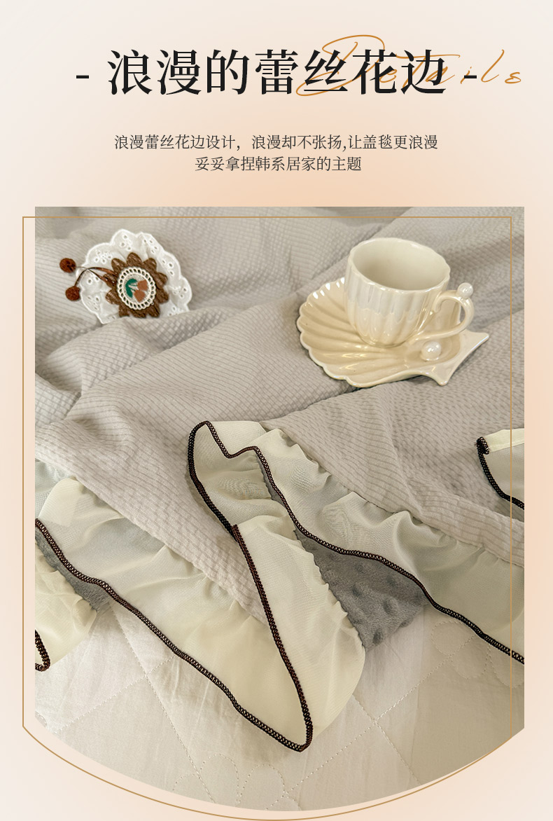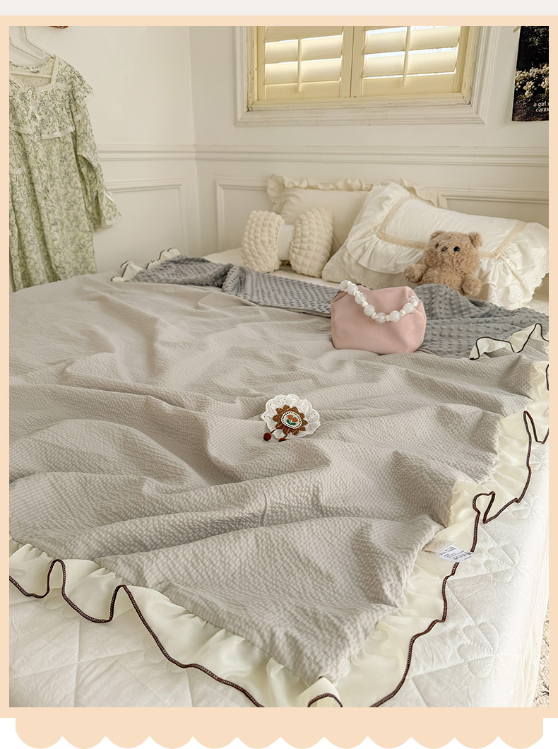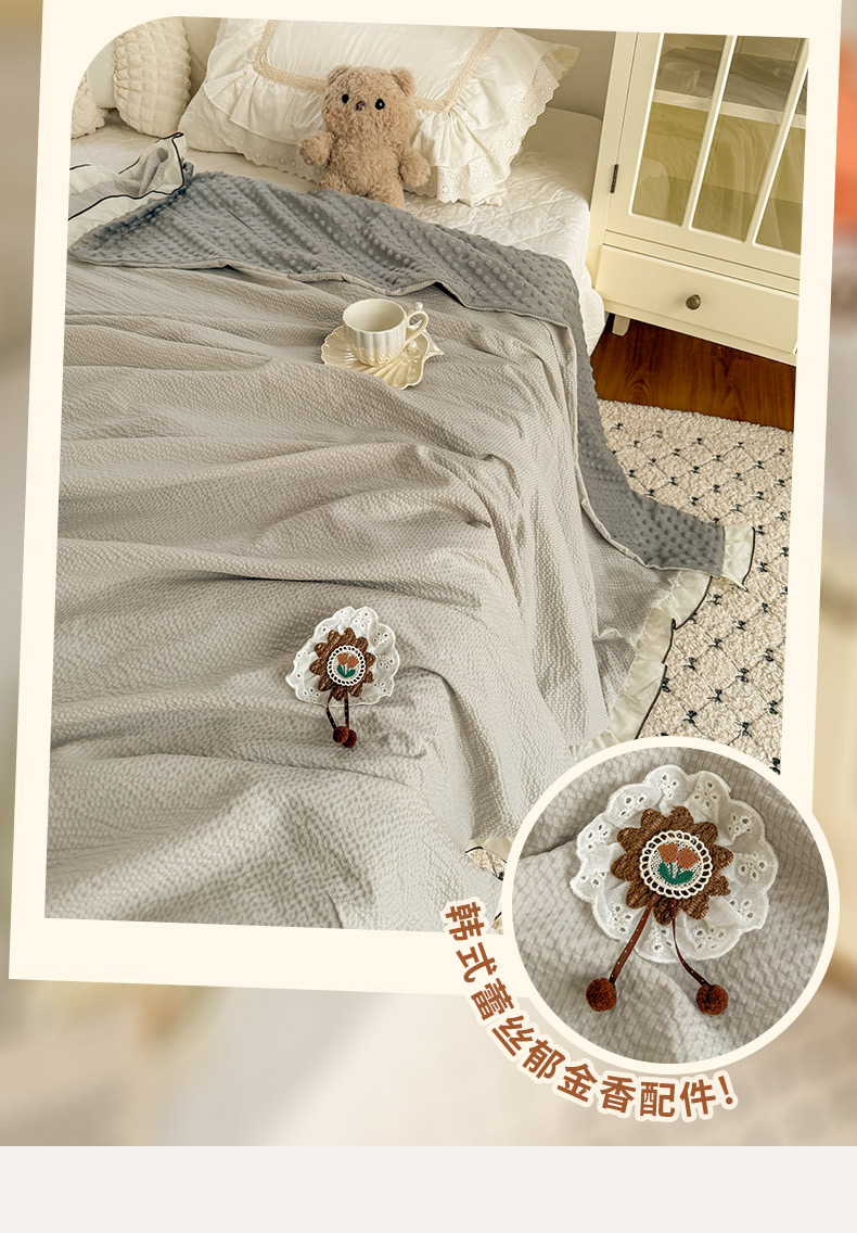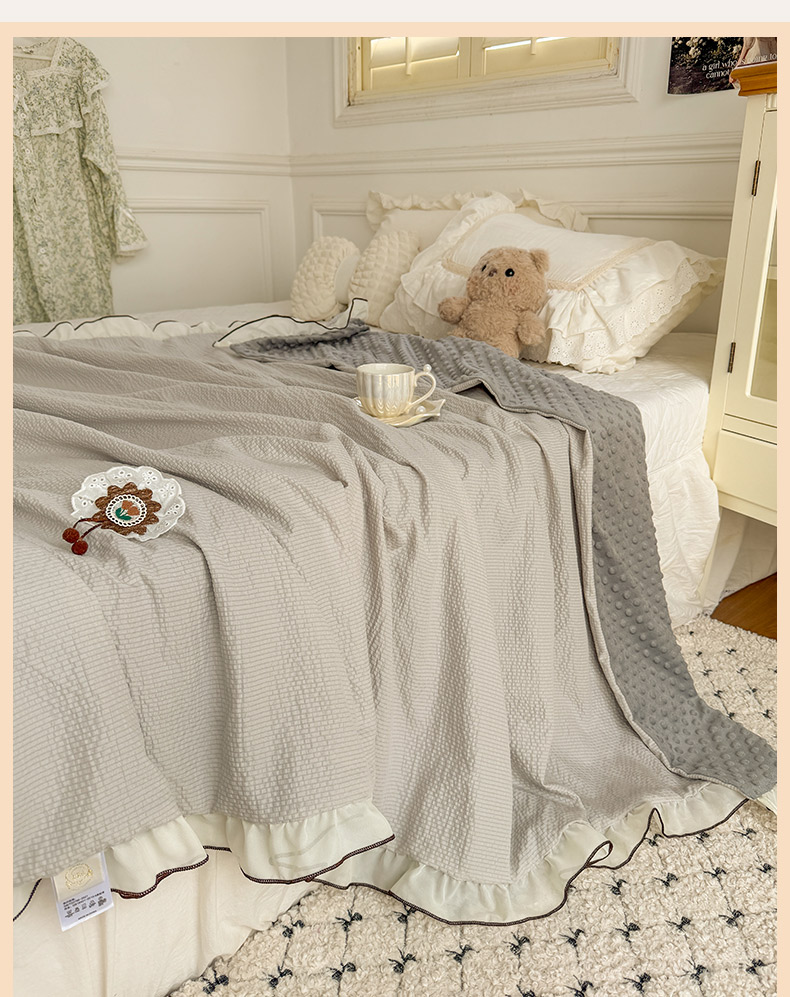 商品名称:潮邦创意家居 2026新款韩版花边奶芙豆豆夏被夏凉被空调被盖毯-纱雾时光系列 灰调奶芙