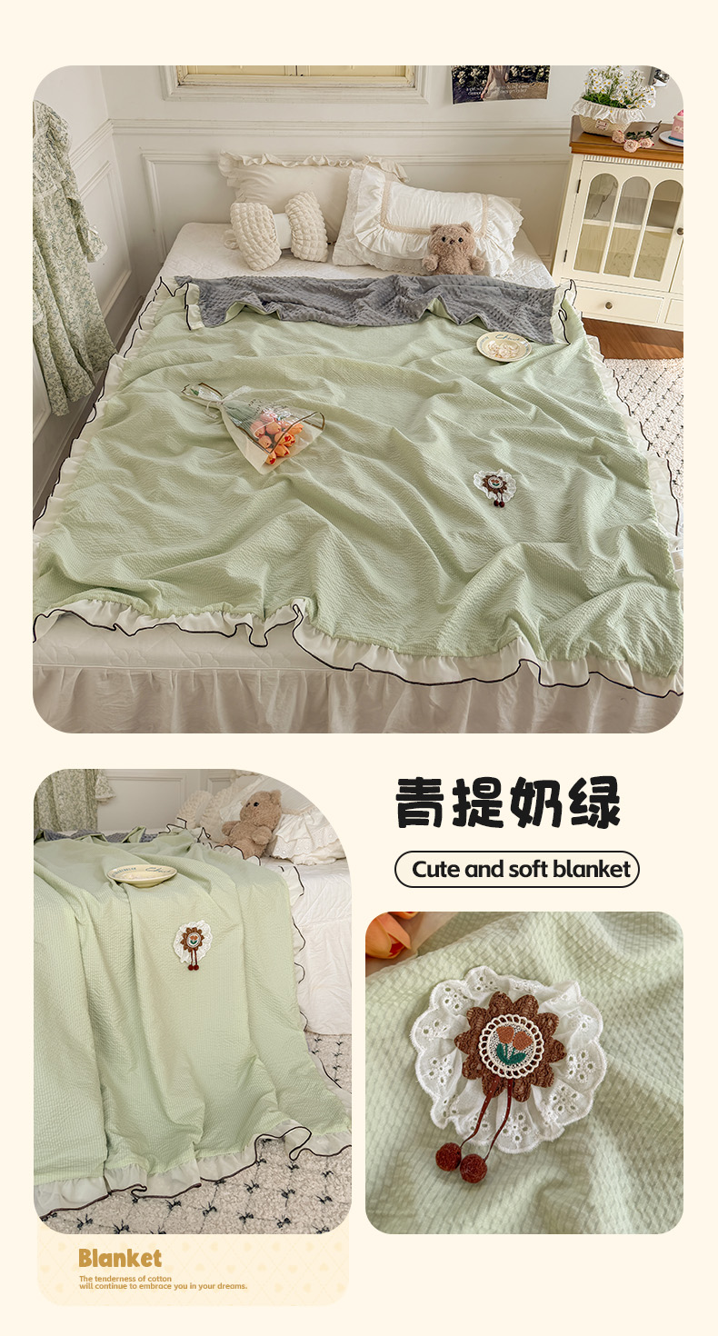 (总)潮邦创意家居 2026新款韩版花边奶芙豆豆夏被夏凉被空调被盖毯-纱雾时光系列,冰蓝气泡,灰调奶芙,蜜橘气泡,浅粉云絮,青提奶绿,组合图仅供展示不可下单