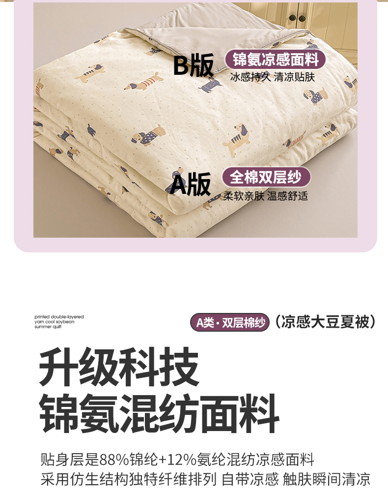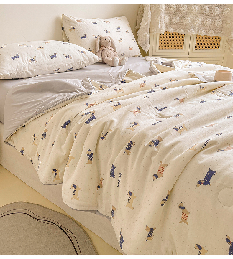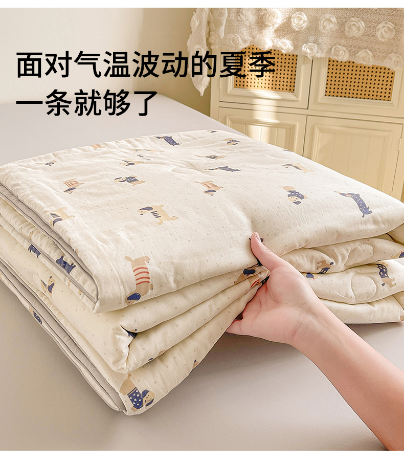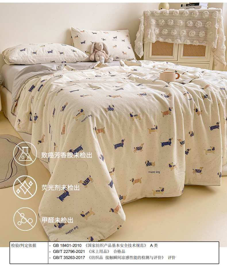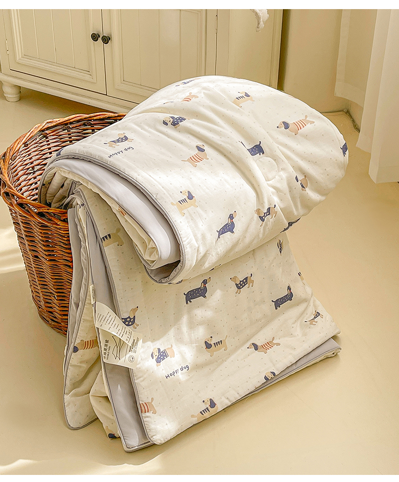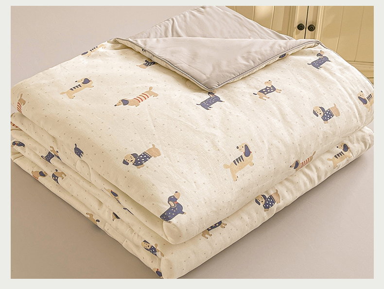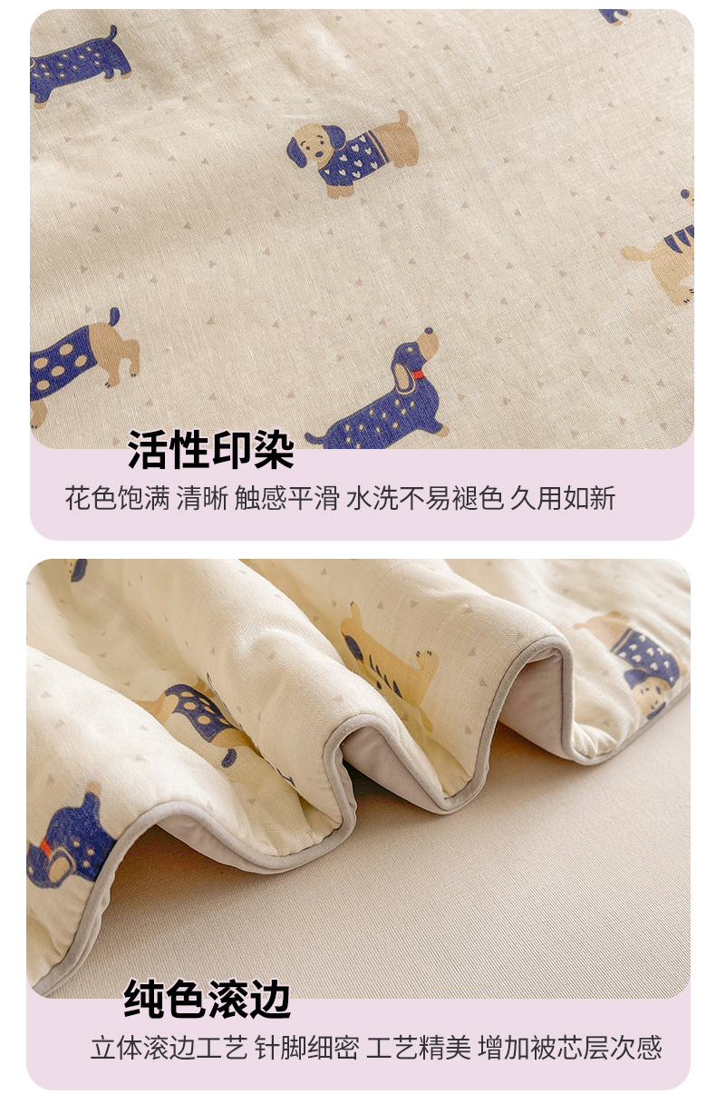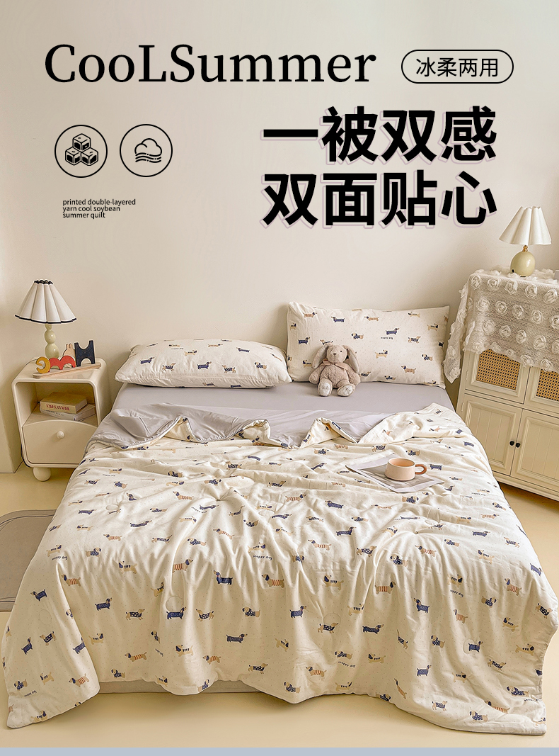 • 91家纺网 家纺一手货源 找家纺 小禹仔家纺 2026新款A类印花双层纱凉感大豆夏被 腊肠狗