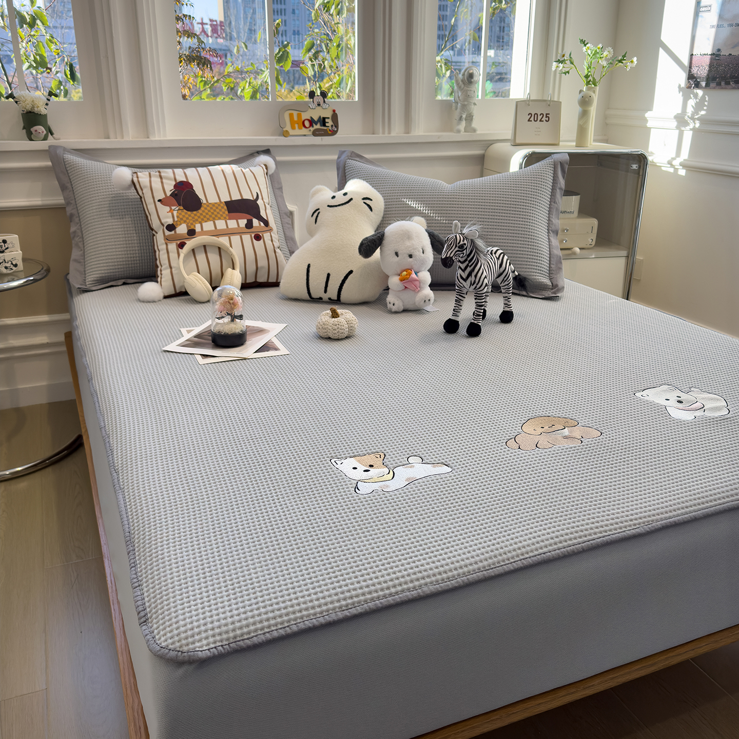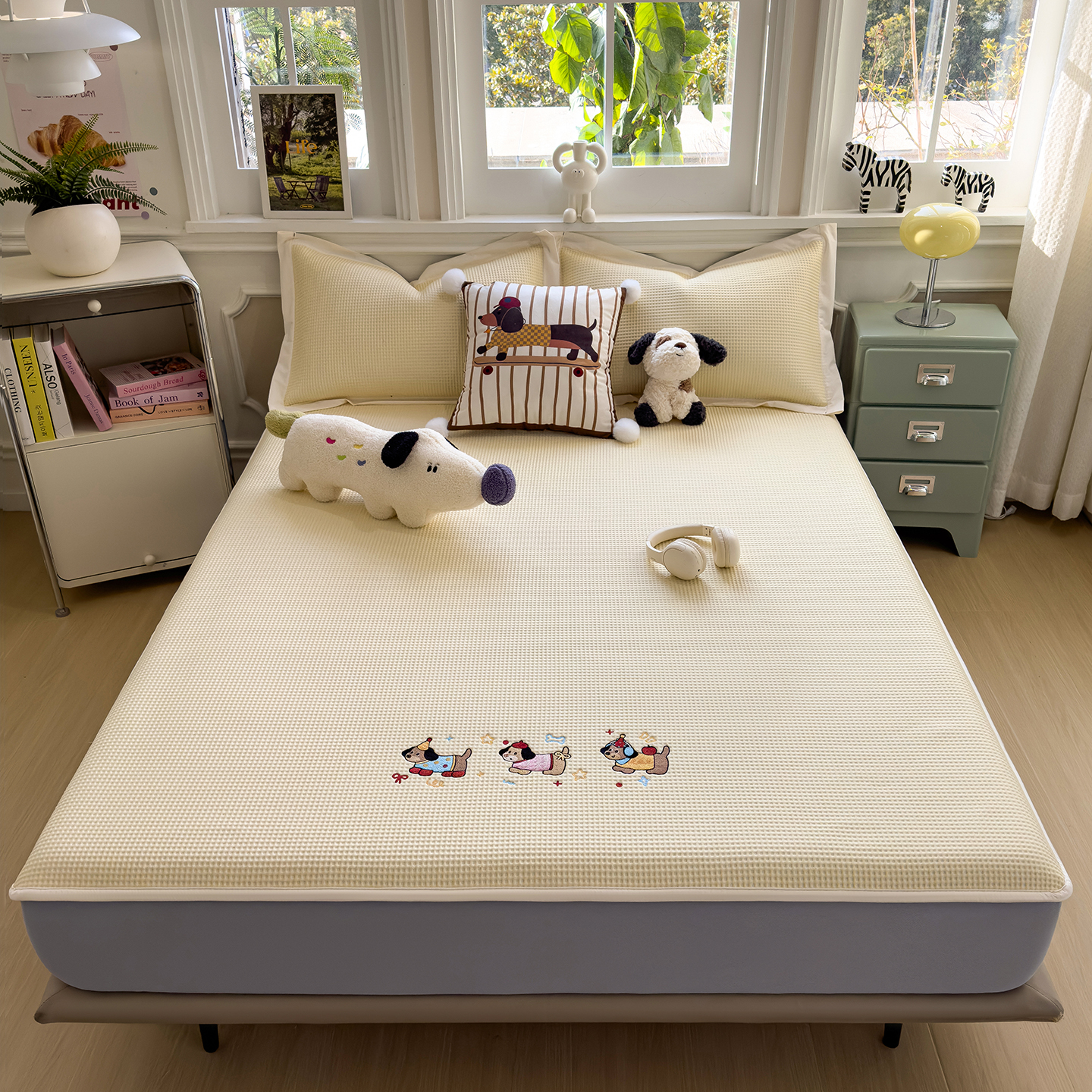几禾 2026新款华夫格刺绣款凉席-床笠款 趣味腊肠狗-床笠款