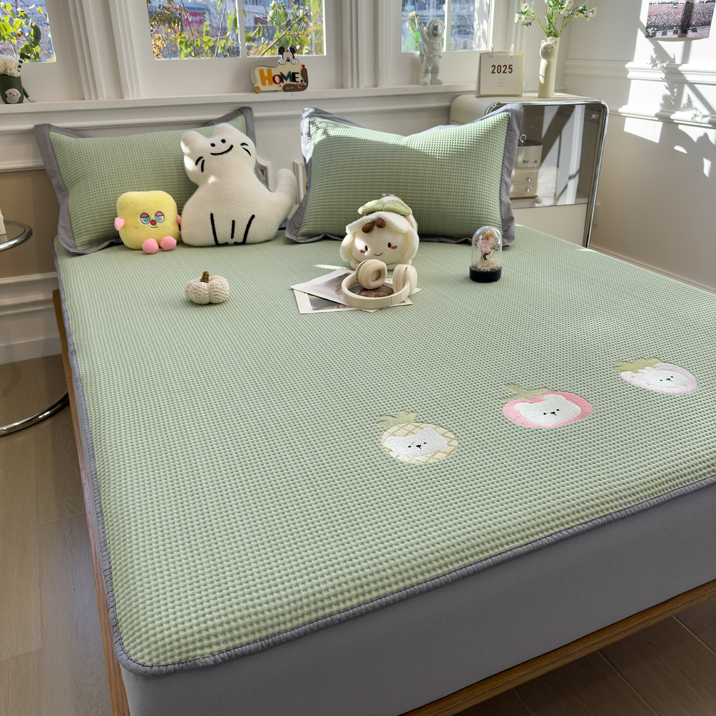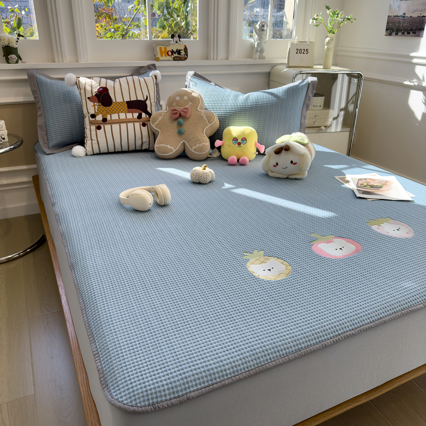 (总)几禾 2026新款华夫格刺绣款凉席-床席款,懒懒小憩-床席款,可可喵派-床席款,奶冻喵-果绿-床席款,奶冻喵-蓝-床席款,趣味腊肠狗-床席款,躺躺岛-灰-床席款,躺躺岛-咖啡棕-床席款,兔免星人-床席款,组合图