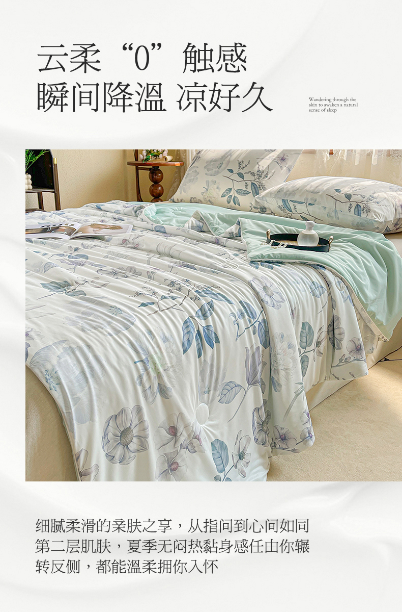 (总)小禹仔家纺 2026新款氨纶凉感印花夏被,夏瑶绿,半山花,风荷举,花陌语,曼莎,木绵芙,沐野,晴川,樱絮,櫻绯雨,薄荷绿,冰感粉,冰感粉拼薄荷绿,藏青拼天空蓝,米色,天空蓝,天空蓝拼米色,烟云灰,烟云灰拼浅灰,优雅紫
