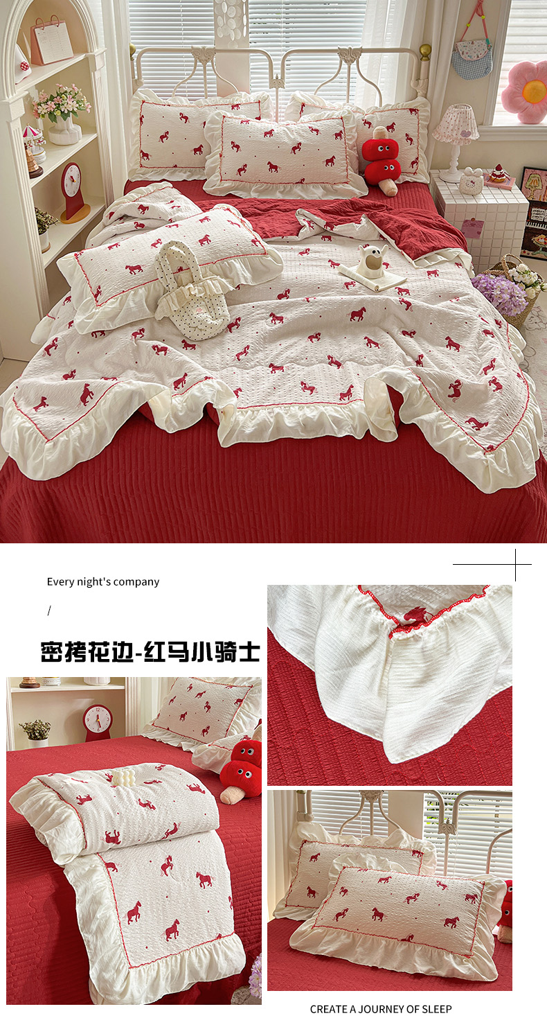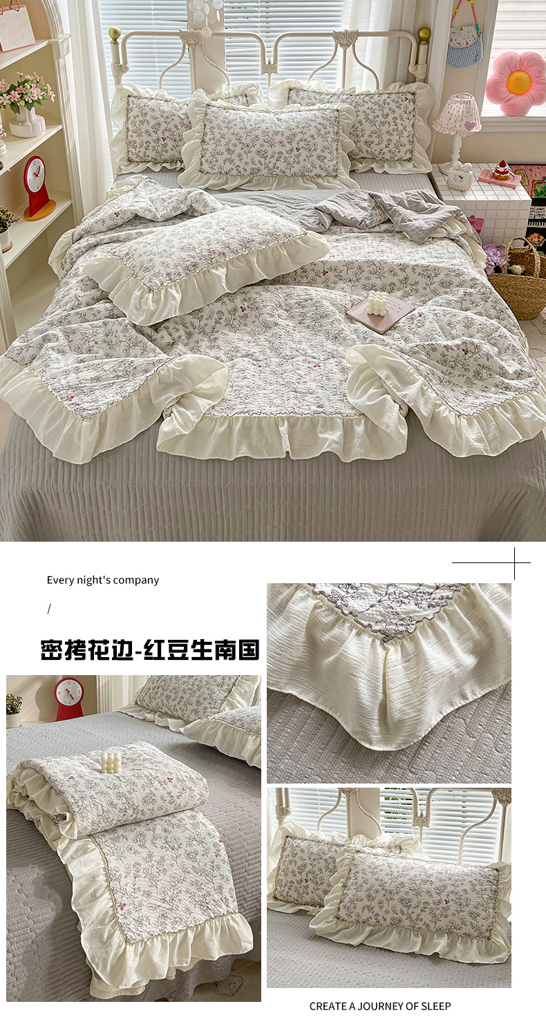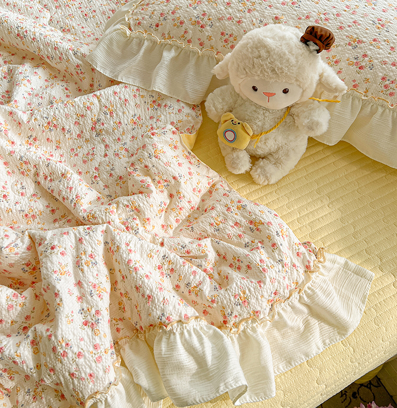 当前位置: 91家纺网 > 商品网购 > 床品套件 > 四件套 > 夏被四件套 > 富米莱(原臻工厂) 2026新款超温柔高弹线密拷花边款泡芙双层纱夏凉被床盖床裙四件套 密拷花边-黄油小碎花