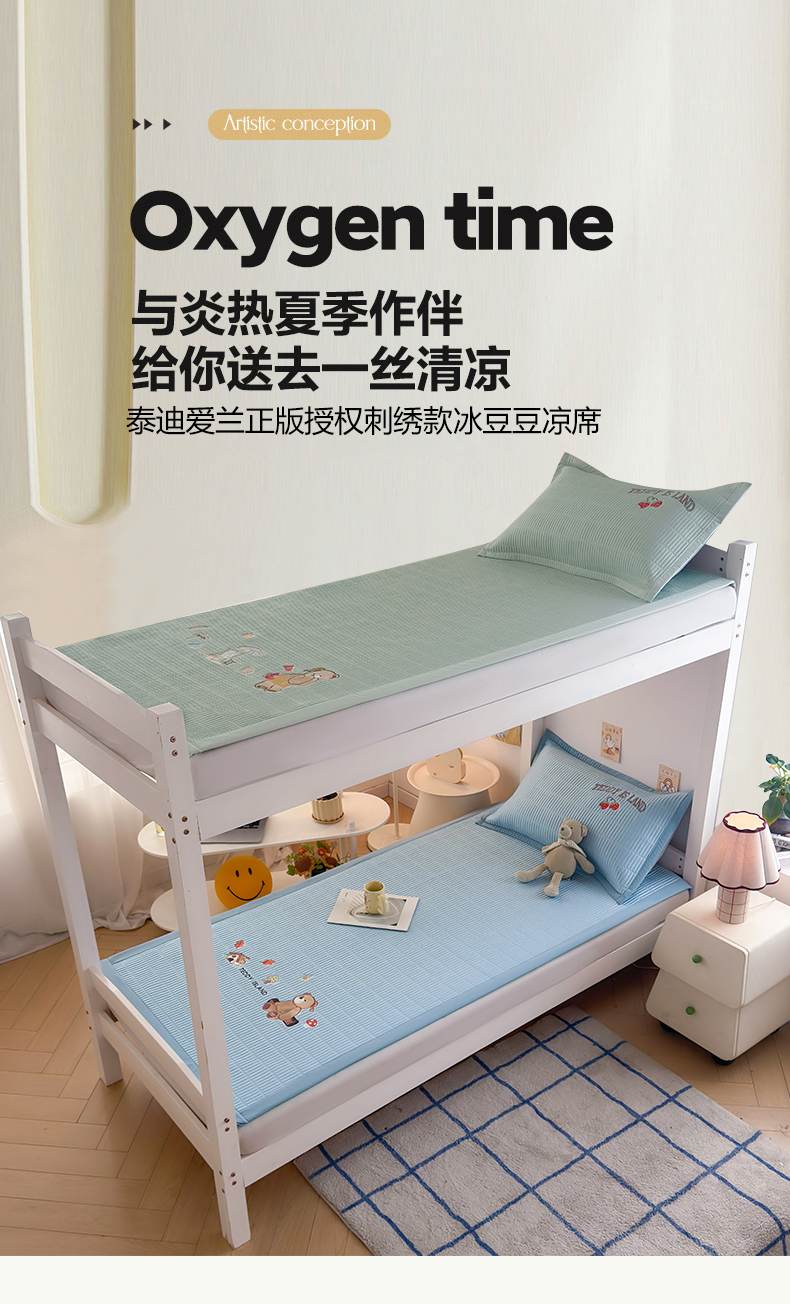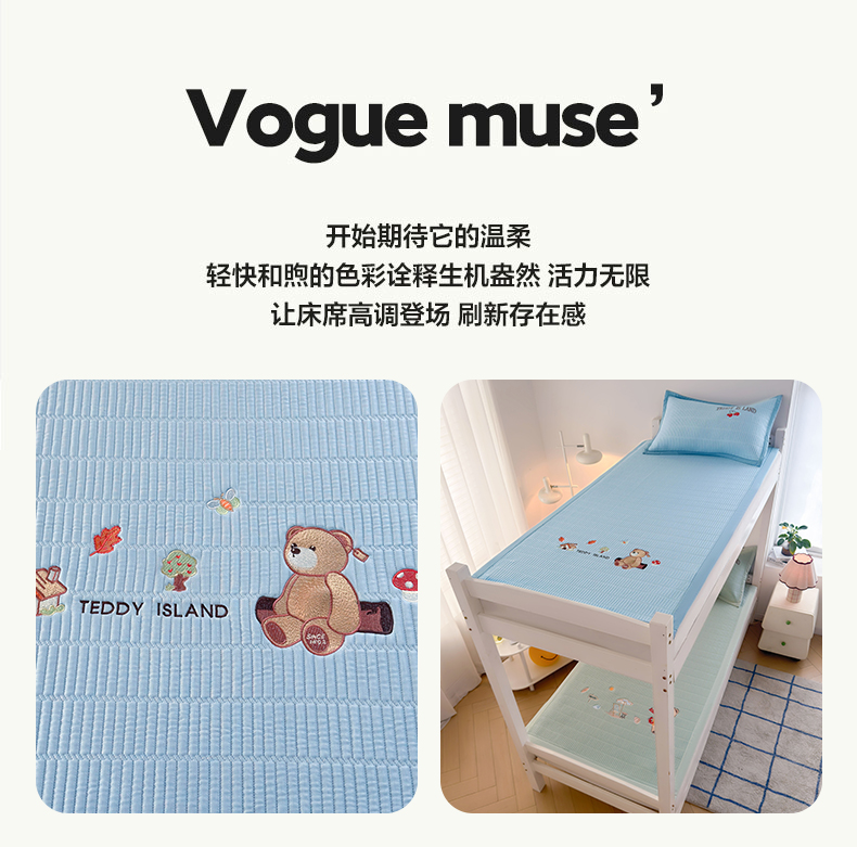 (总)慕木家纺 2026新品A类高端刺绣PE乙纶冰豆豆凉席泰迪爱兰系列正版授权(提供买家秀)