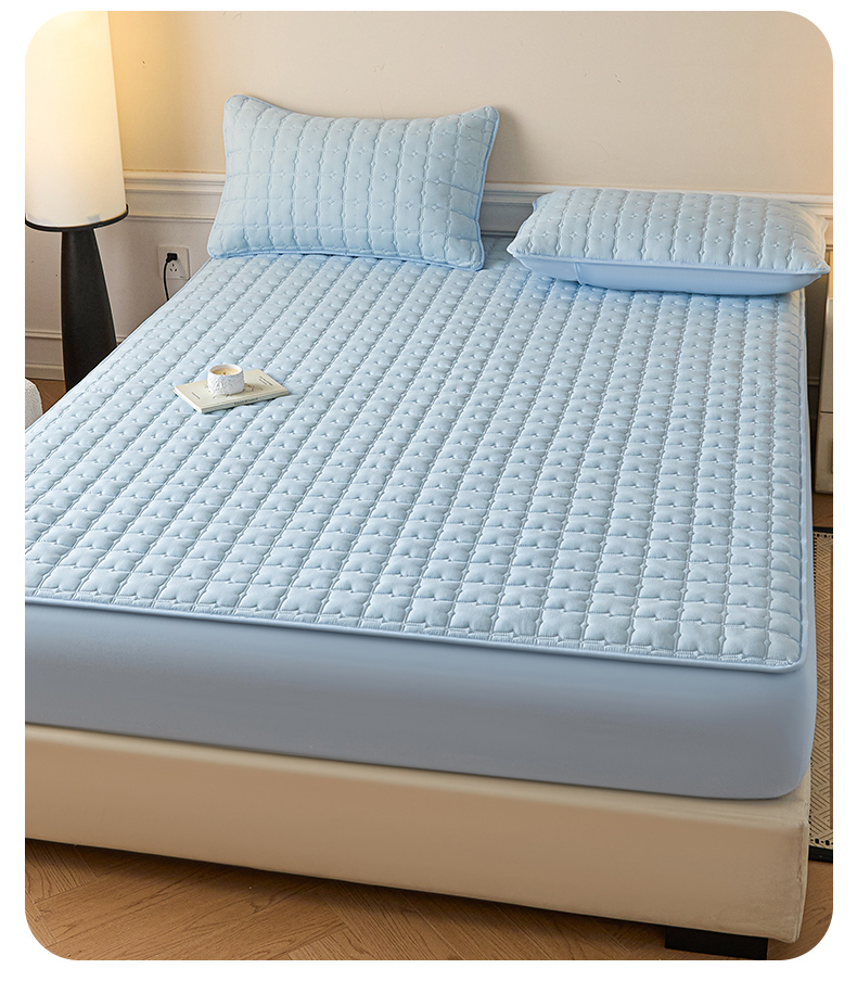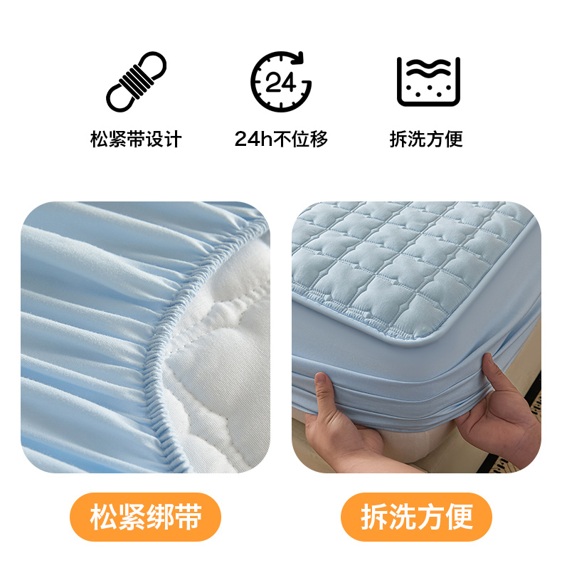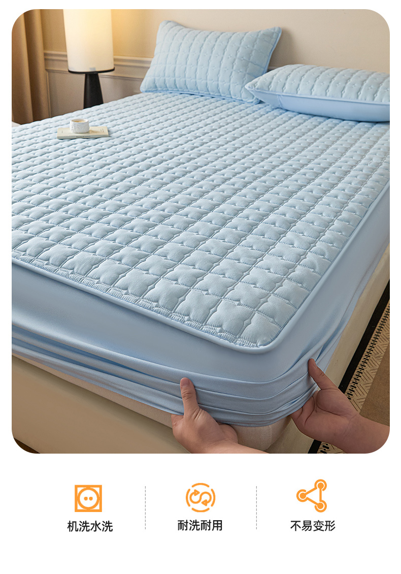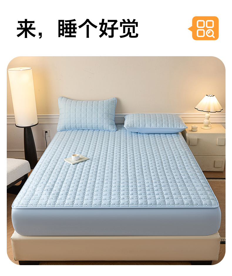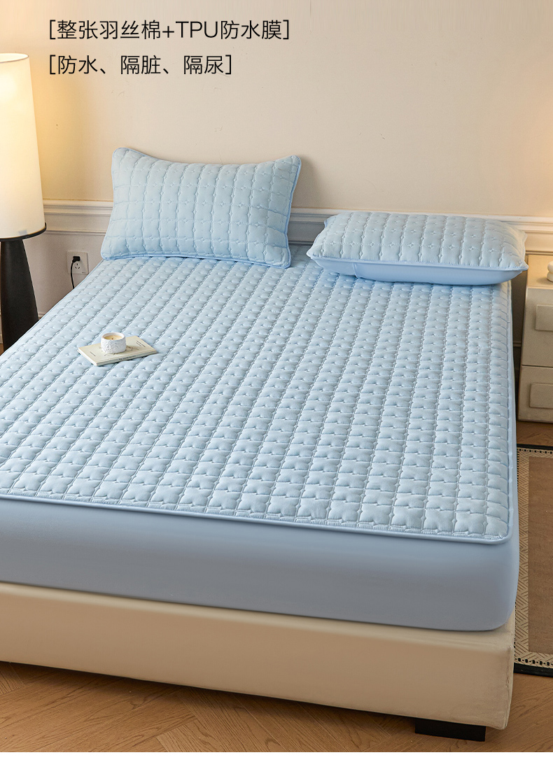 • 91家纺网 家纺一手货源 找家纺 优眠坊 2026新款夹棉床笠/防水床笠   床笠三件套 格趣-浅蓝-防水款
