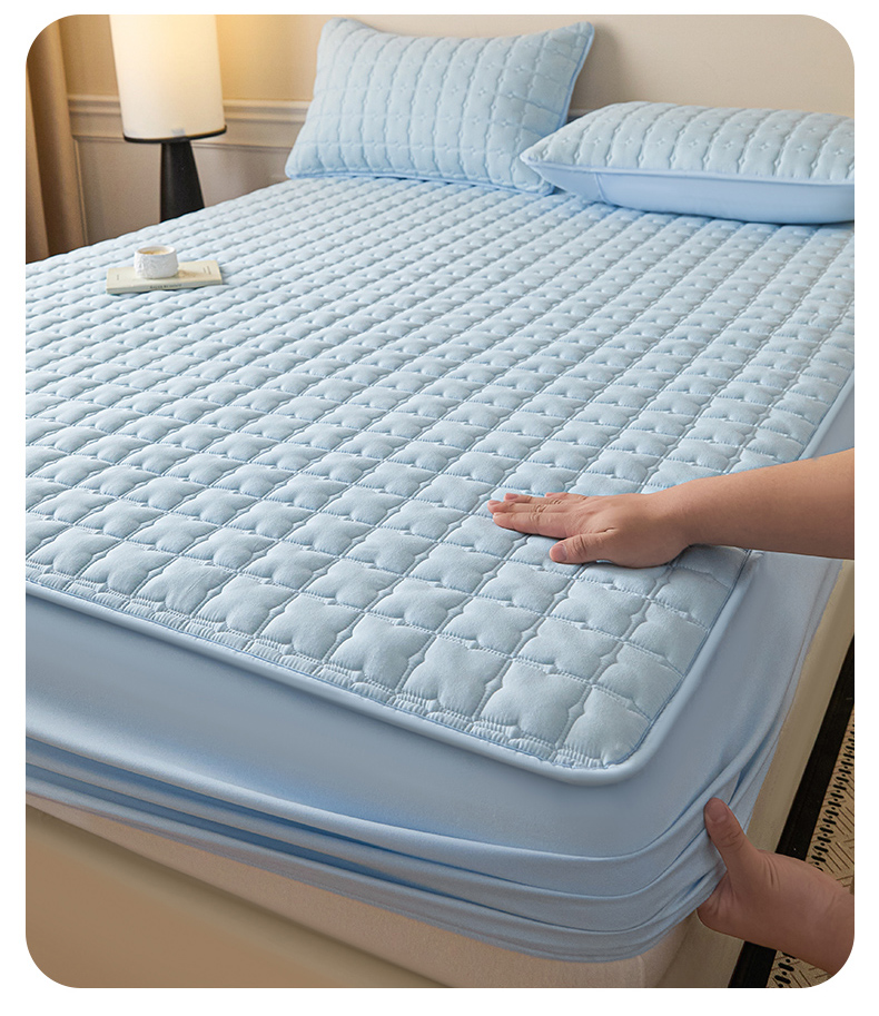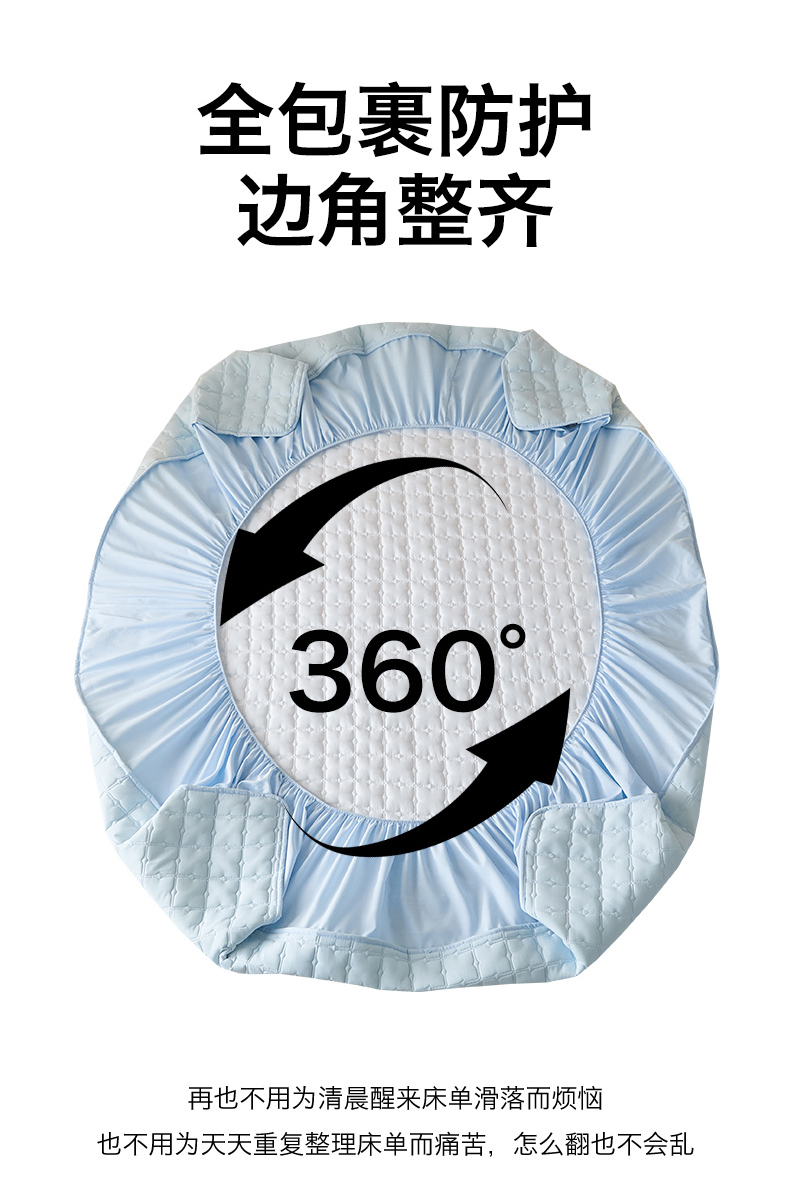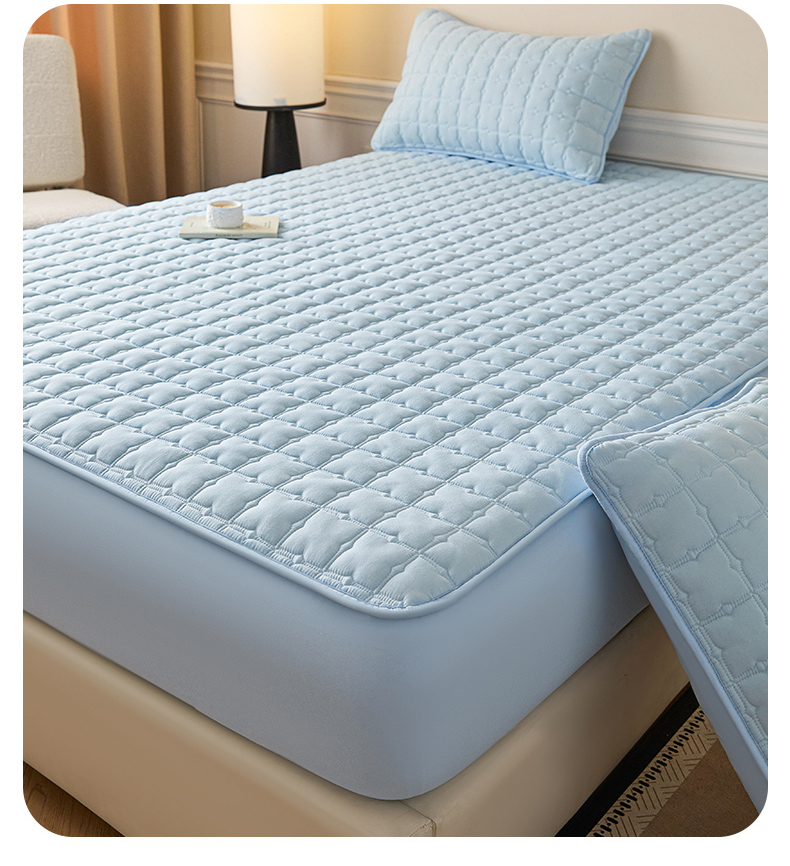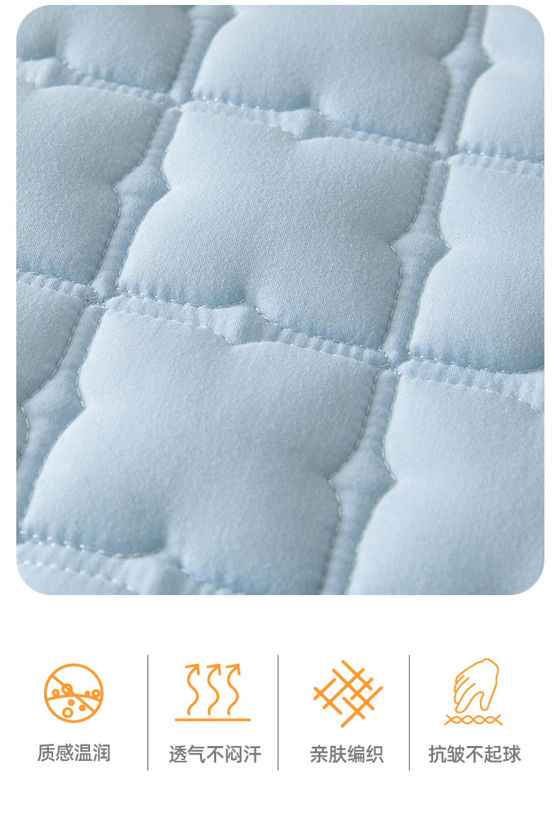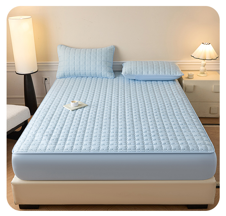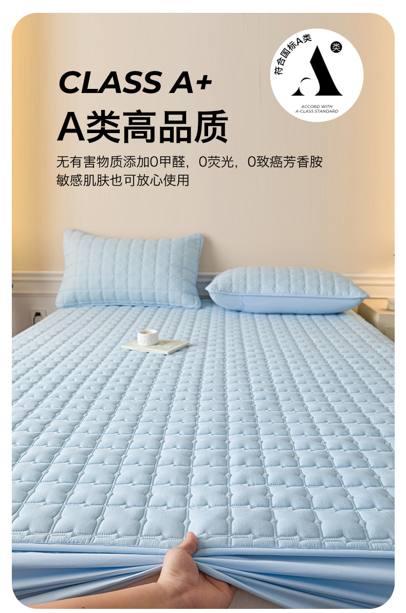 • 91家纺网 家纺一手货源 找家纺 优眠坊 2026新款夹棉床笠/防水床笠   床笠三件套 格趣-浅蓝-防水款