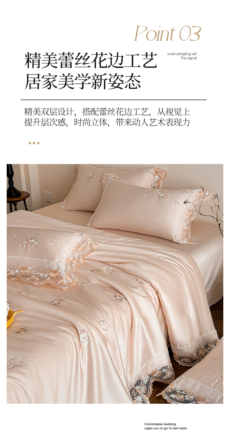 当前位置: 91家纺网 > 商品网购 > 床品套件 > 四件套 > 夏被四件套 > 爱家(原缔乐家纺) 2026新款天丝夏被四件套-轻梦 婉栀-奶昔白