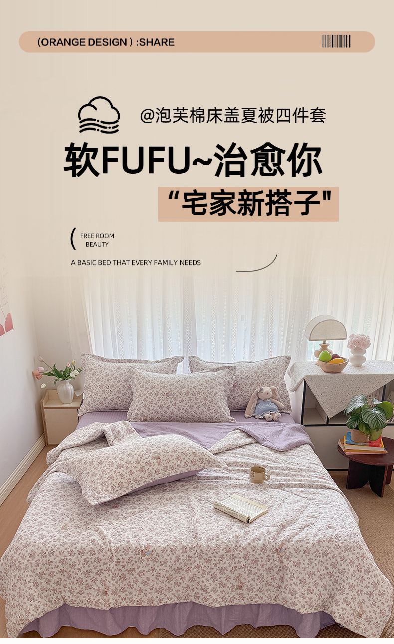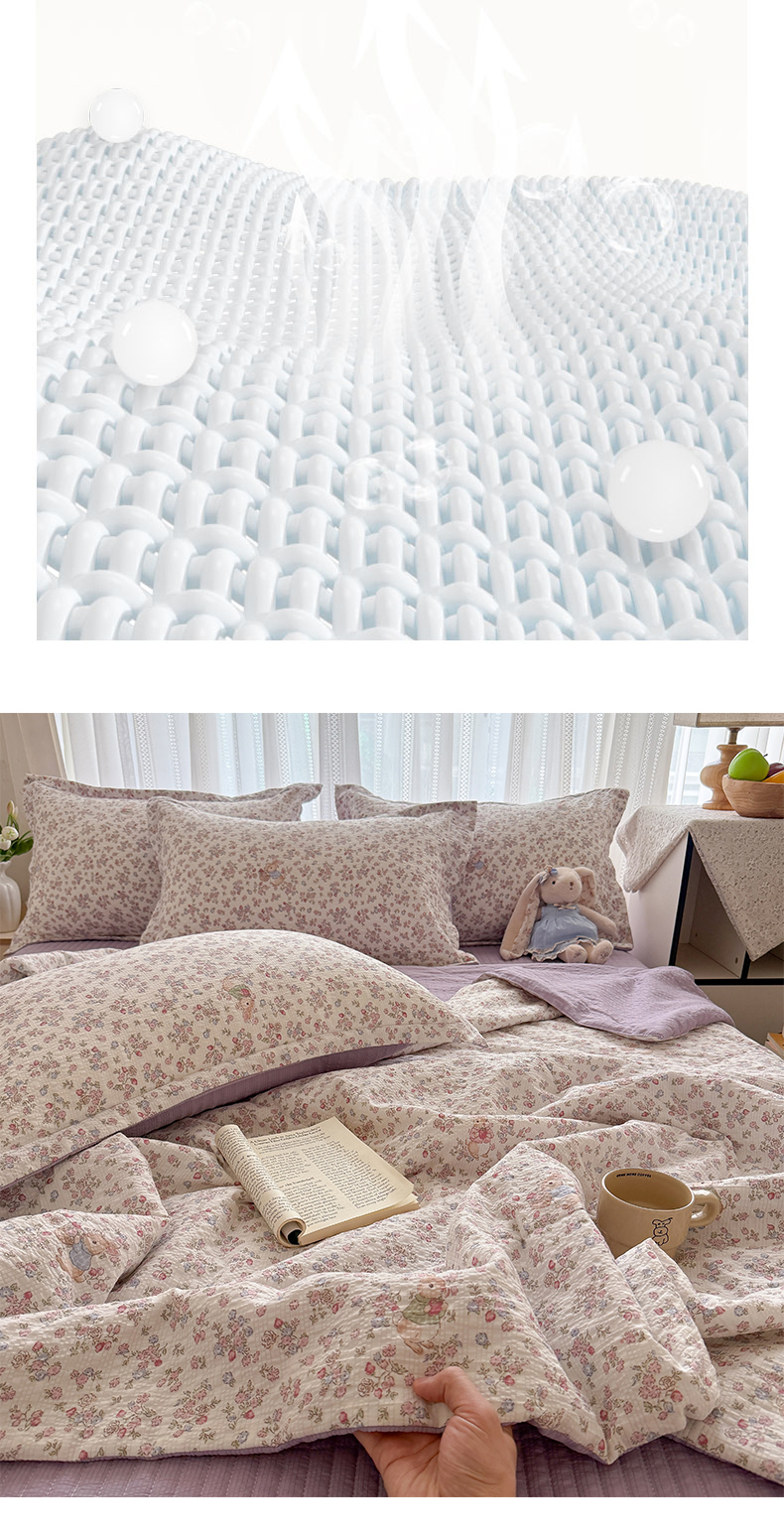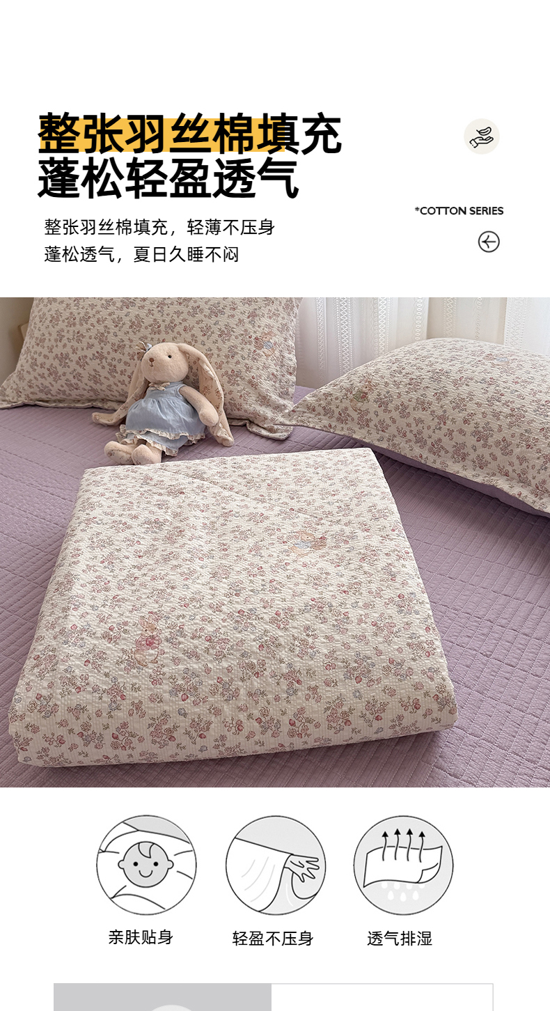 商品名称:梵希雅 2026新款云感泡芙棉泡芙纱床盖夏被四件套 红果兔兔