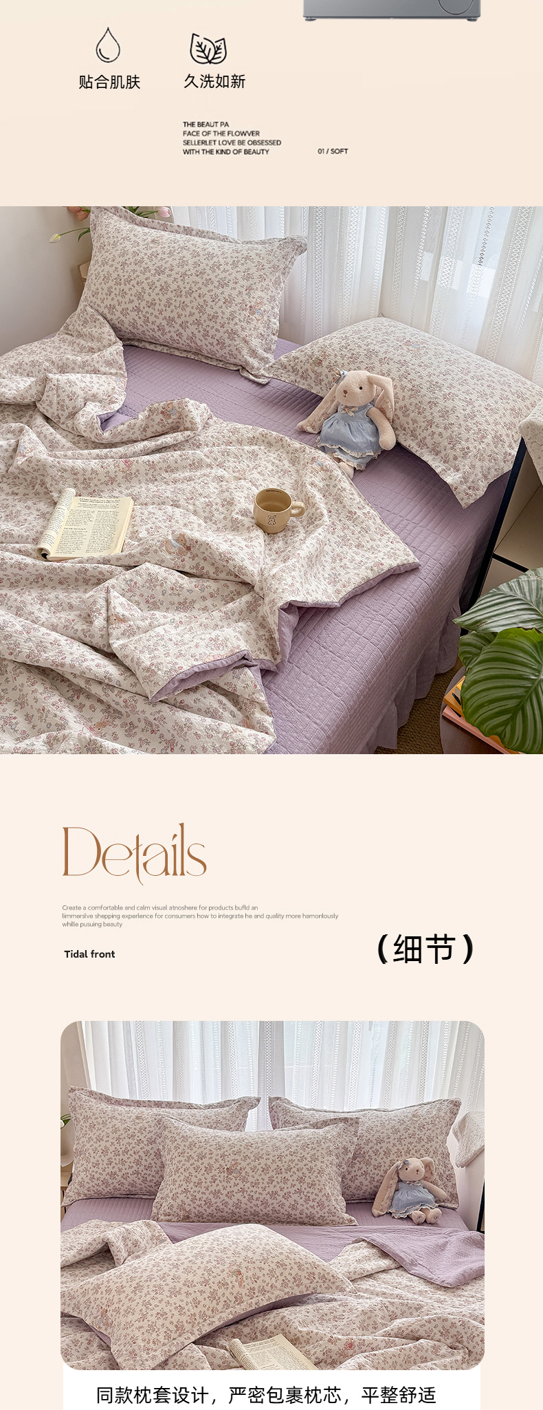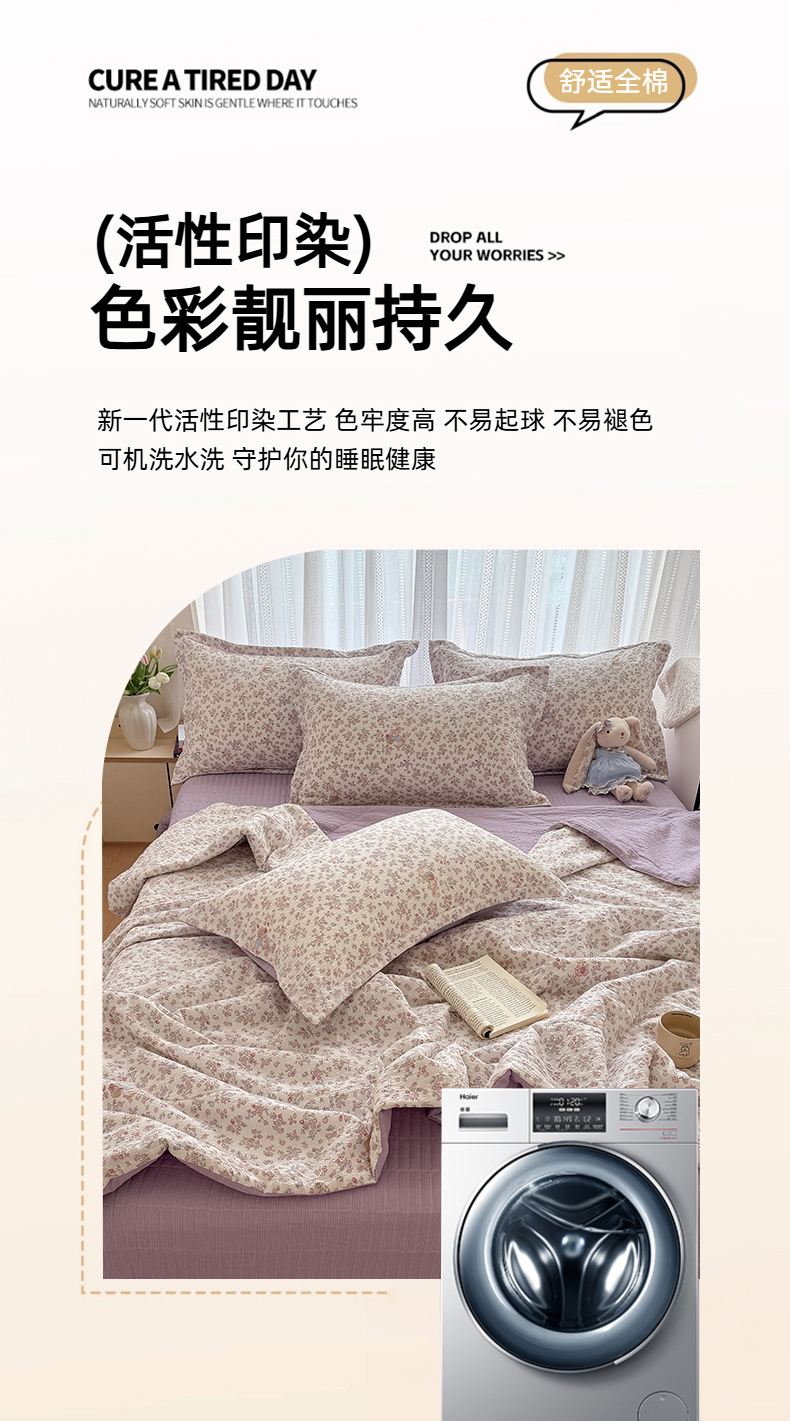 (总)梵希雅 2026新款A类木棉皱皱纱四件套,薄荷奶绿,蜜桃花田,奶油彩糖,青格花信,樱粉星野,紫雾花野