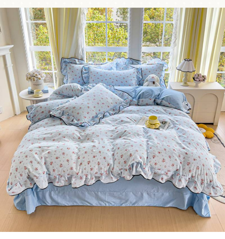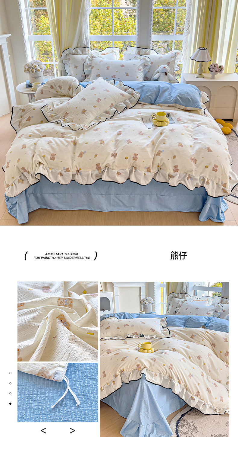 当前位置: 91家纺网 > 商品网购 > 床品套件 > 四件套 > 其它四件套 > 找底底家纺 2026新款A类泡泡棉双层纱四件套花边夏被四件套 小若欢