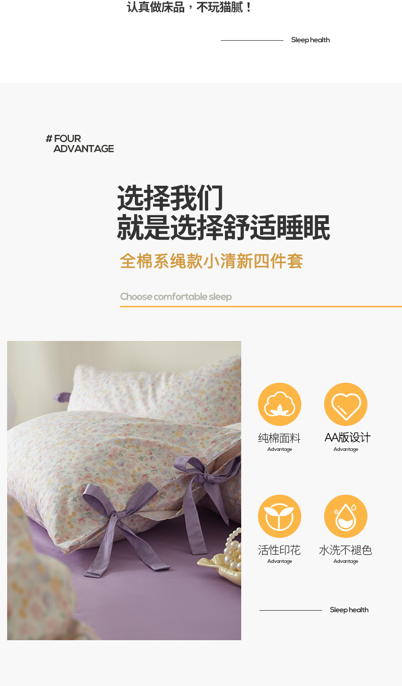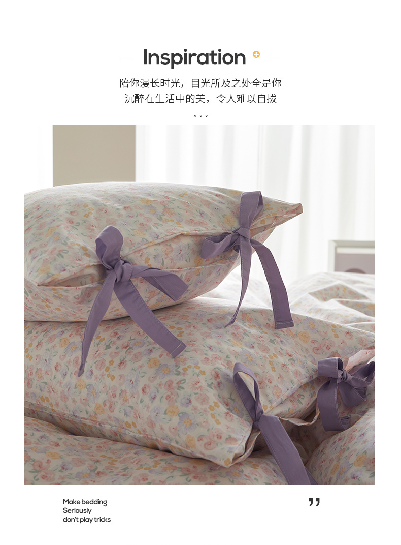 (总)绫韵家纺 2026春夏新款13372全棉ins小碎花纯棉田园风床单床笠四件套系绳蝴蝶结系列,贝贝利亚,沉香,丹恒,花田喜事