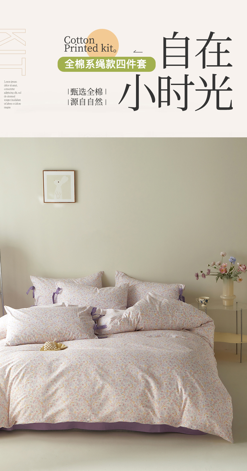 (总)绫韵家纺 2026新款13372全棉ins小碎花纯棉田园风床单床笠四件套系绳蝴蝶结系列二,布洛尔,白兰地,碎花小熊,妃子笑黄-松霜绿,露娜-风信紫,蔓春-风信紫,晴天-海棠红,汀兰-海港蓝,仙子-松霜绿,小花兔-海棠红,元气兰