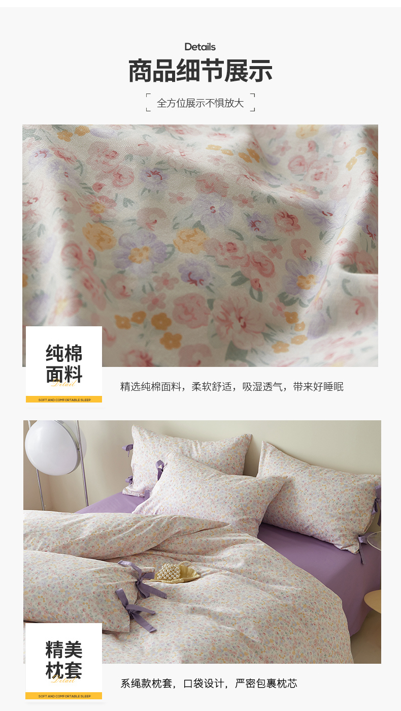 (总)绫韵家纺 2026新款全棉ins小碎花13372纯棉田园风简约四件套,陌上秋,轻语·米,桃点点,条纹小猫,兔趣花园,乡村爱情,星星花,伊涅芙