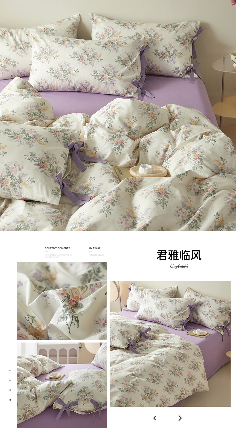 (总)绫韵家纺 2026新款春夏13372全棉蝴蝶结四件套系列,贝贝利亚,丹恒,花样春光,火花,沉香,花田喜事,君雅临风,情有独钟,人间浪漫,舒曼,桃花源,香山雪,紫霞