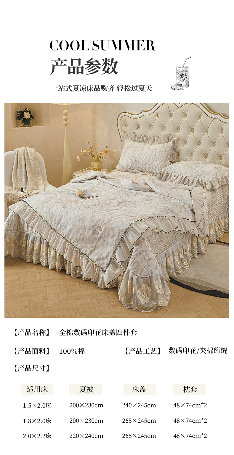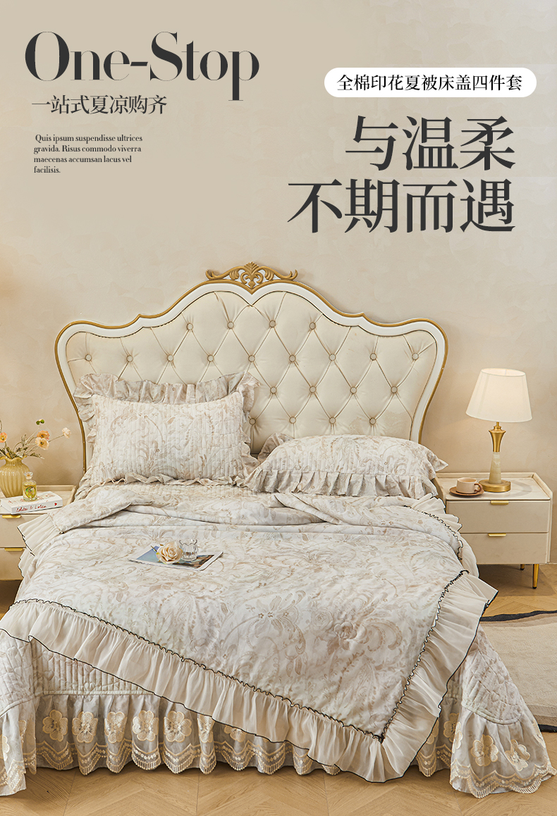 宜凡家纺 2026新款全棉数码印花夏被床盖四件套②号系列 禾暮
