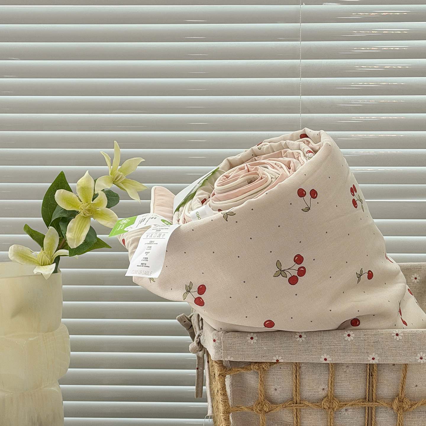 (总)佰织鑫家居 2026新款全棉双层纱床盖款锦氨夏被四件套,车厘子,初夏,可可樱桃,浅夏,青禾,晚香
