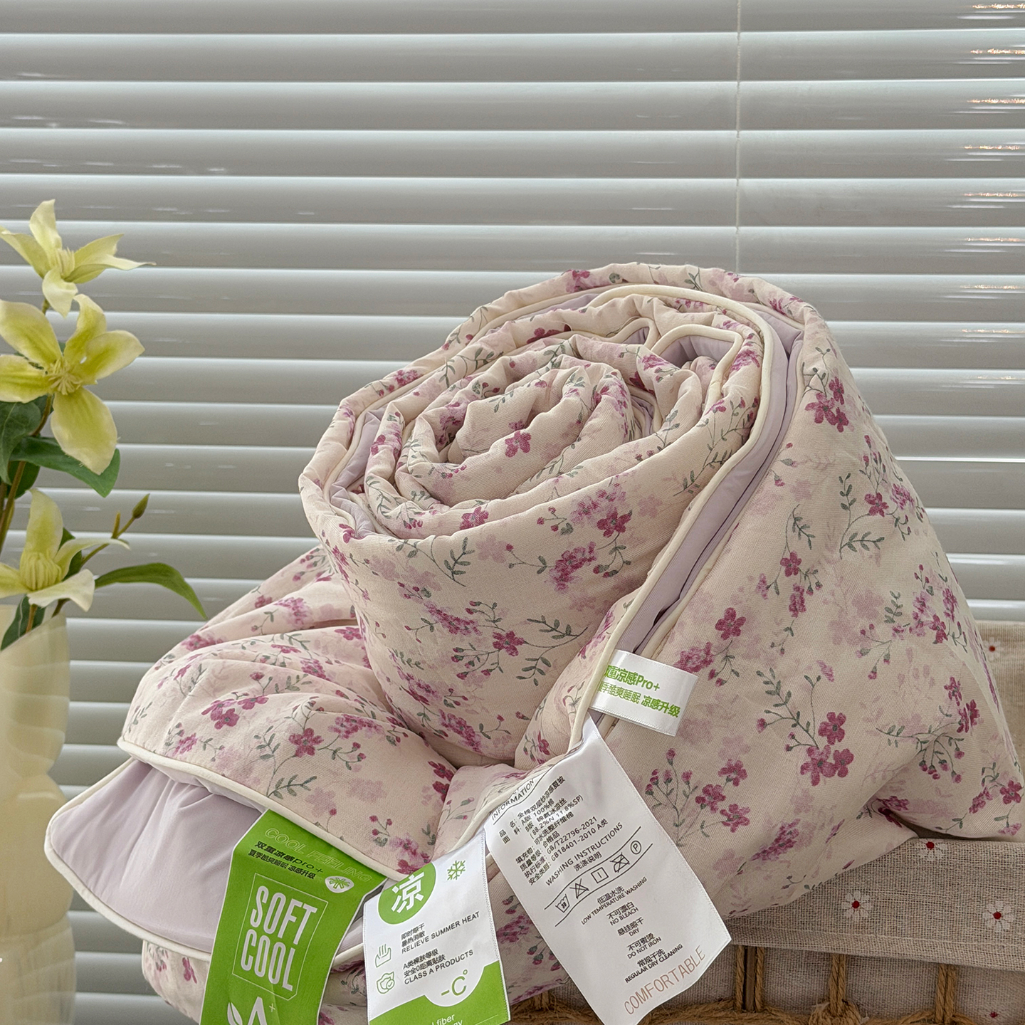 • 91家纺网 家纺一手货源 找家纺 佰织鑫家居 2026新款全棉双层纱锦氨凉感夏凉被空调被 车厘子