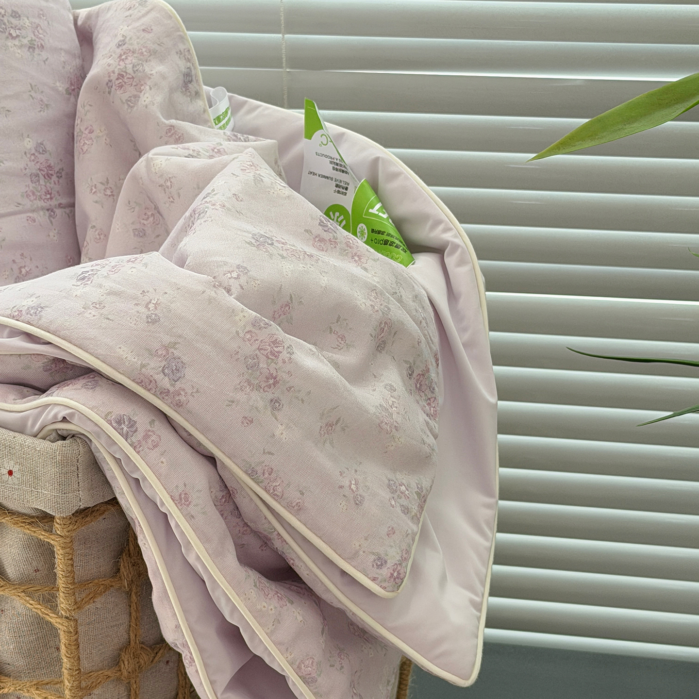 佰织鑫家居 2026新款全棉双层纱锦氨凉感夏凉被空调被 车厘子