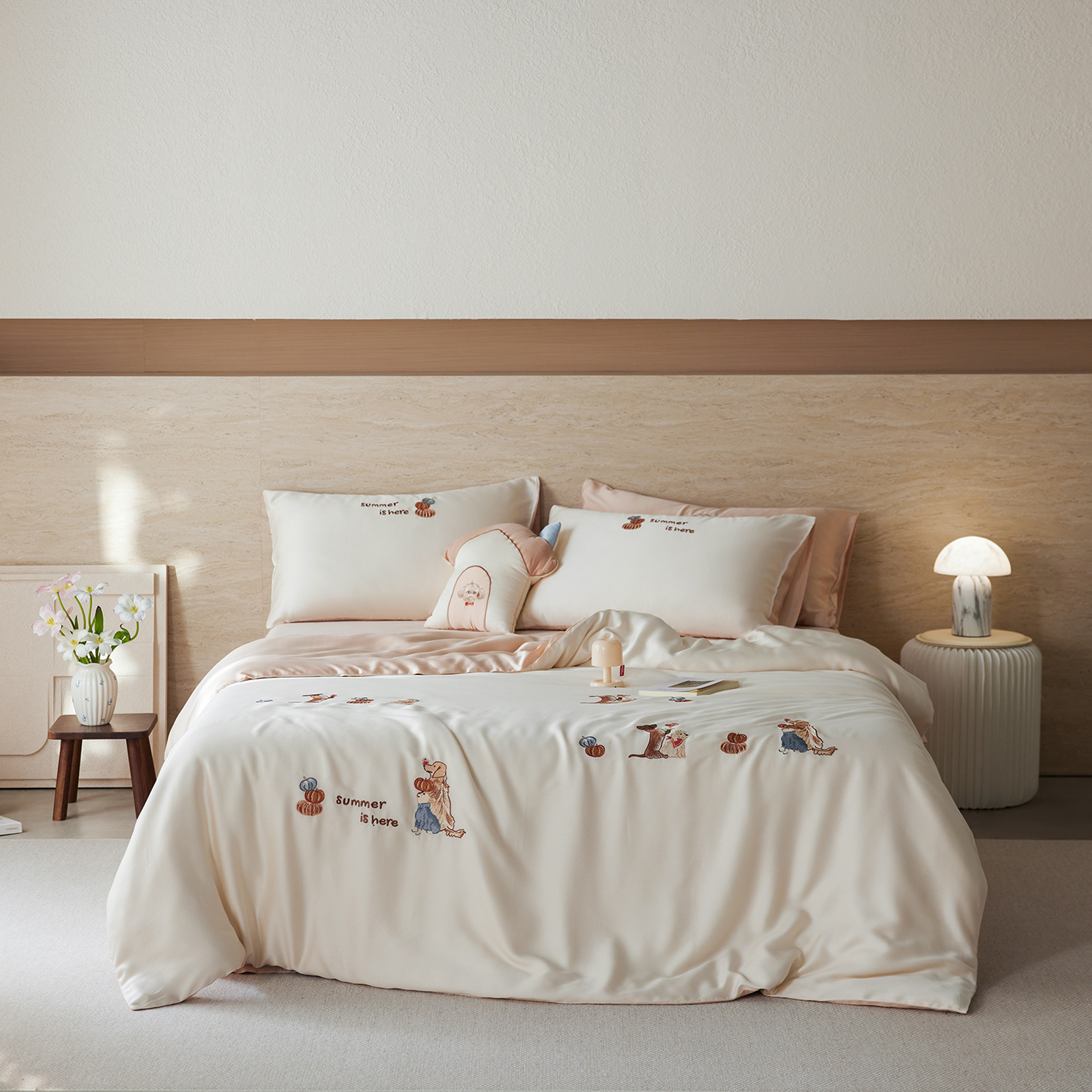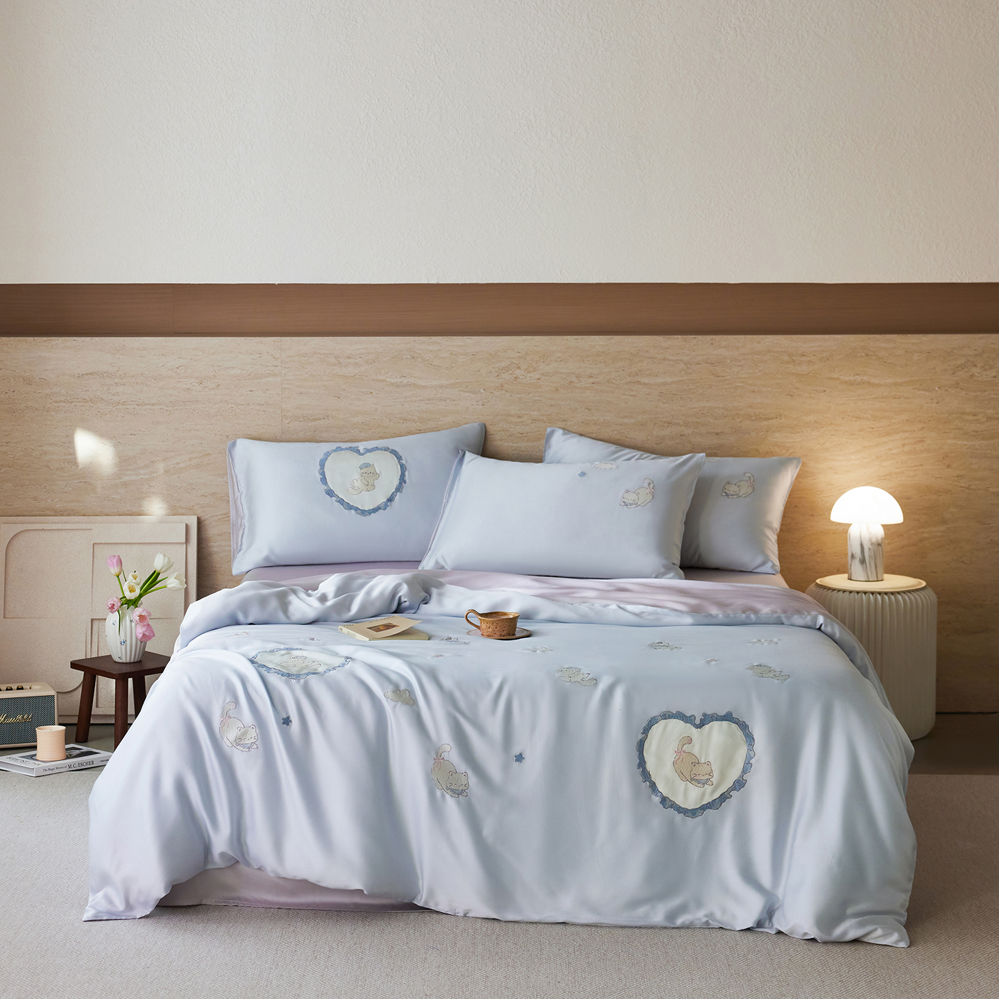 当前位置: 91家纺网 > 商品网购 > 床品套件 > 四件套 > 其它四件套 > 风向标家纺 2026新款兰精天丝绣花四件套-萌宠系列 粉雾小斑