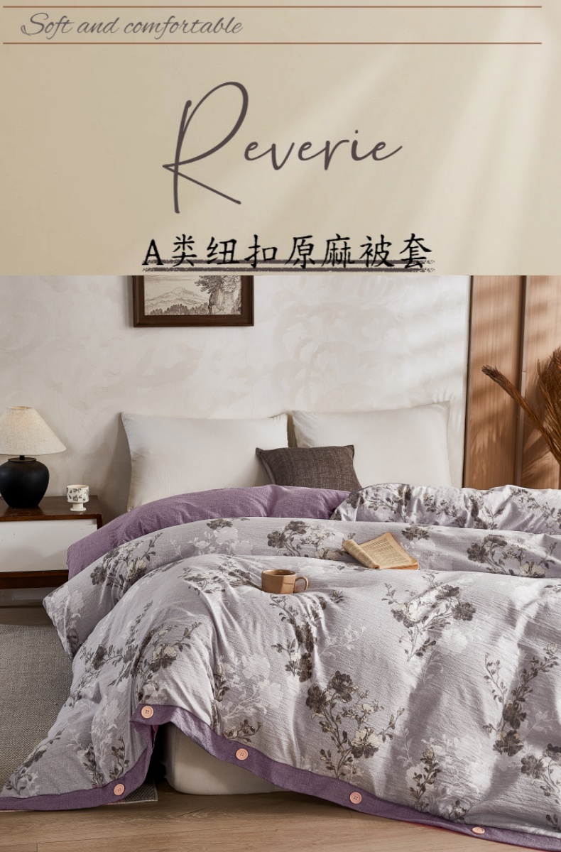 商品名称:梦舒羽 2026新款A类原麻纽扣加厚被套床单宿舍双人床仿亚麻被子 春风序