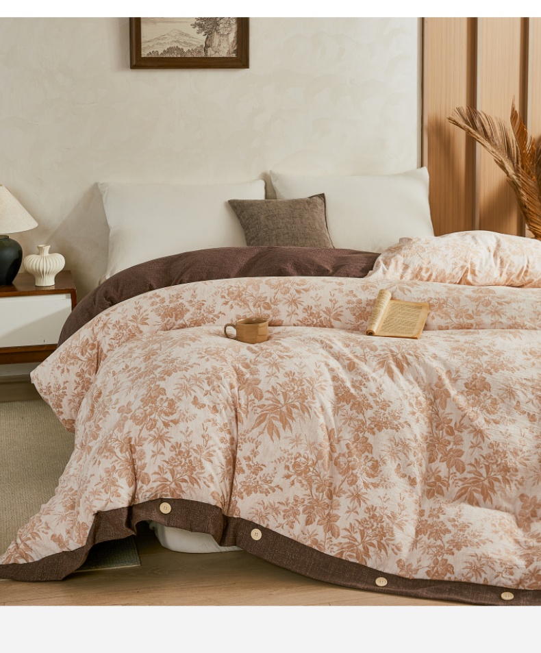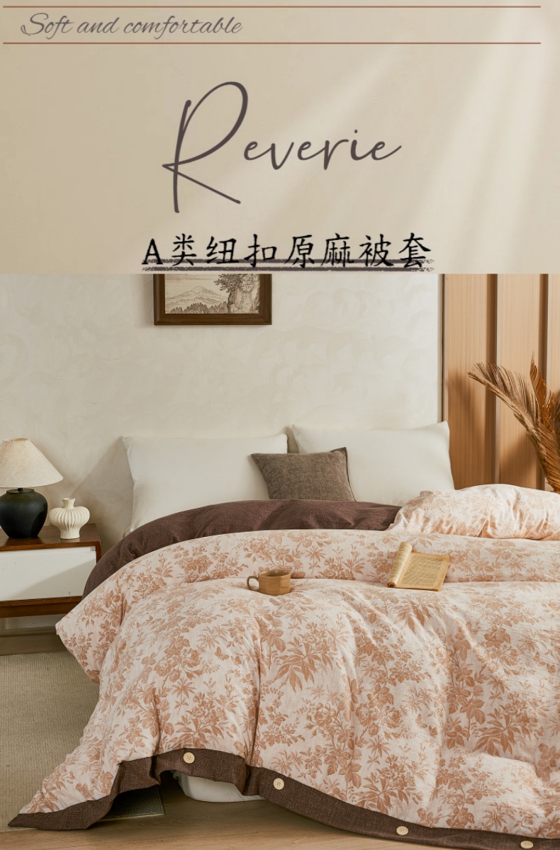 商品名称:梦舒羽 2026新款A类原麻纽扣加厚被套床单宿舍双人床仿亚麻被子 忆秋风