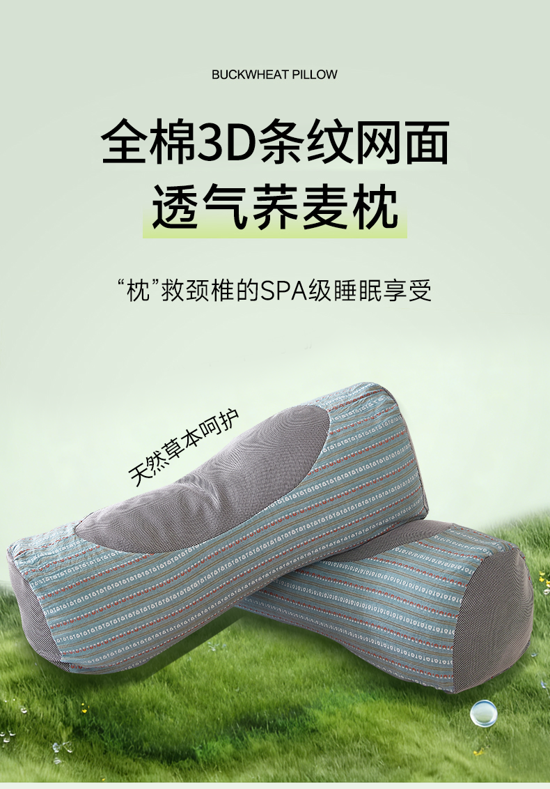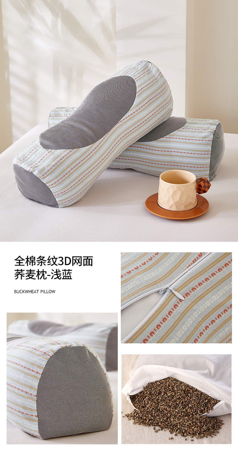 商品名称:梦叶草 2026新款全棉3D条纹网面透气荞麦枕头护颈枕芯 全棉条纹3D网面荞麦枕-卡其