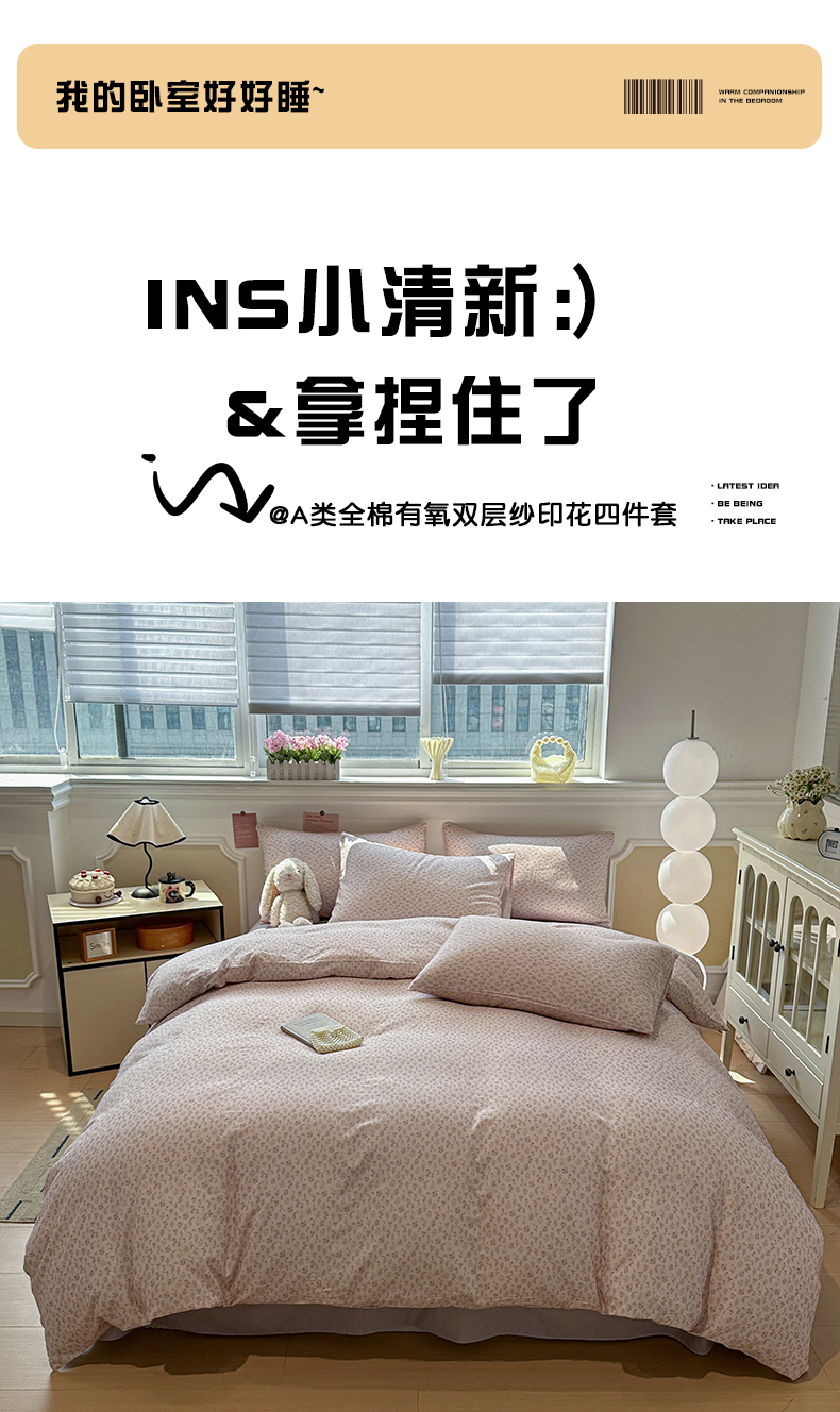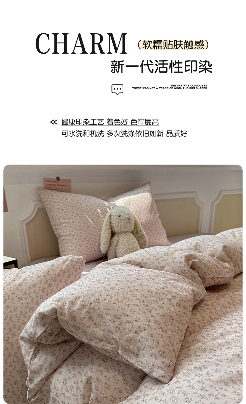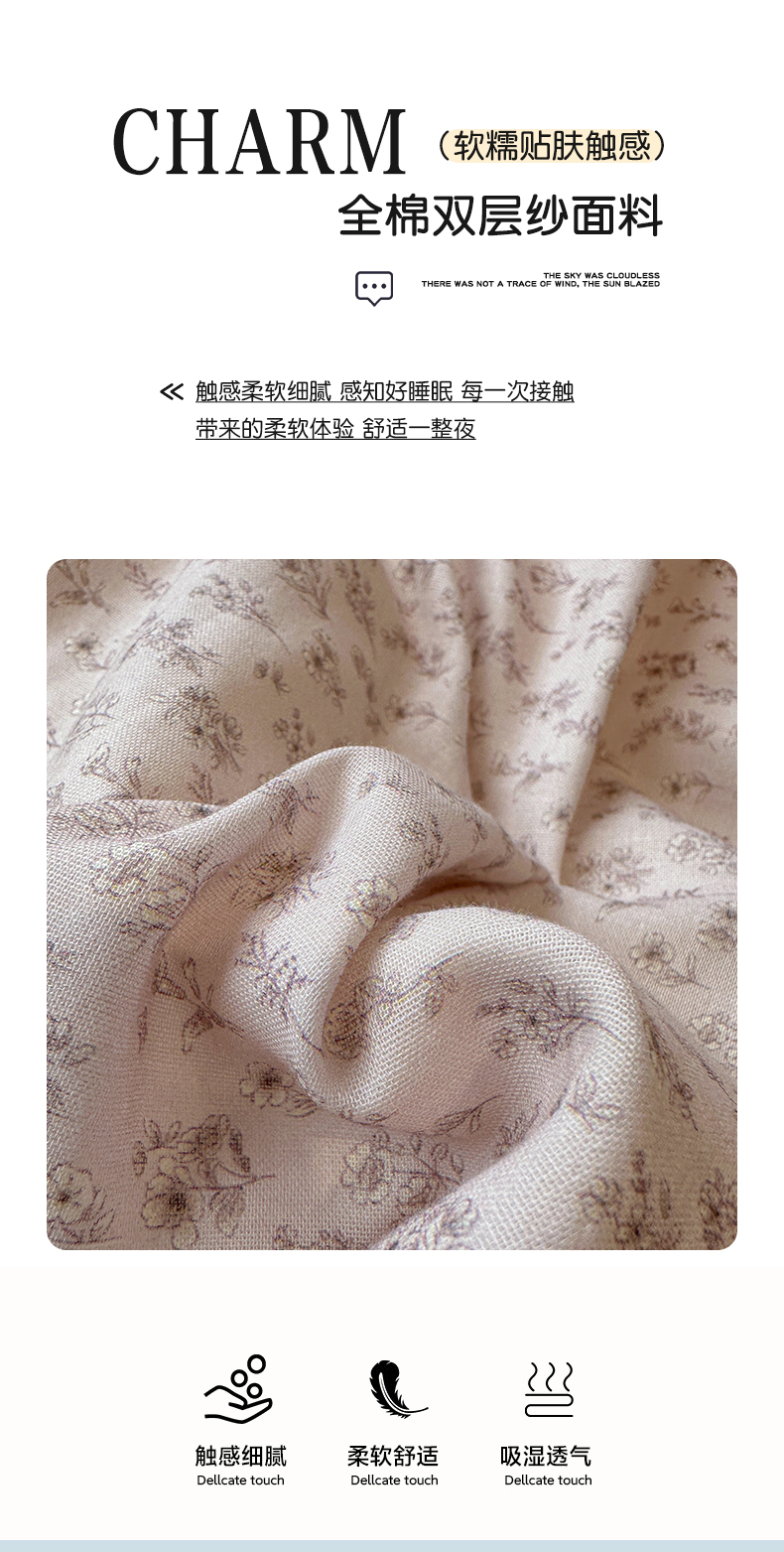 当前位置: 91家纺网 > 商品网购 > 床品套件 > 四件套 > 全棉普通四件套 > 忆生活家纺 2026春夏新款A类全棉纯棉有氧双层纱小清新四件套 芳草