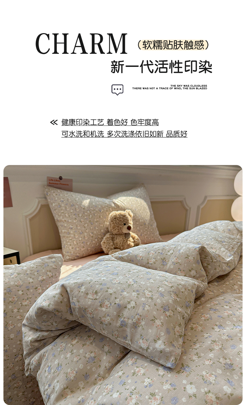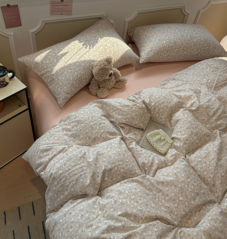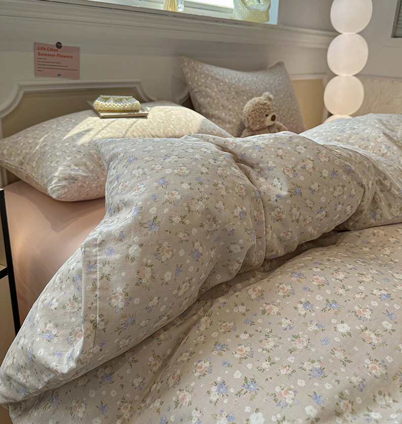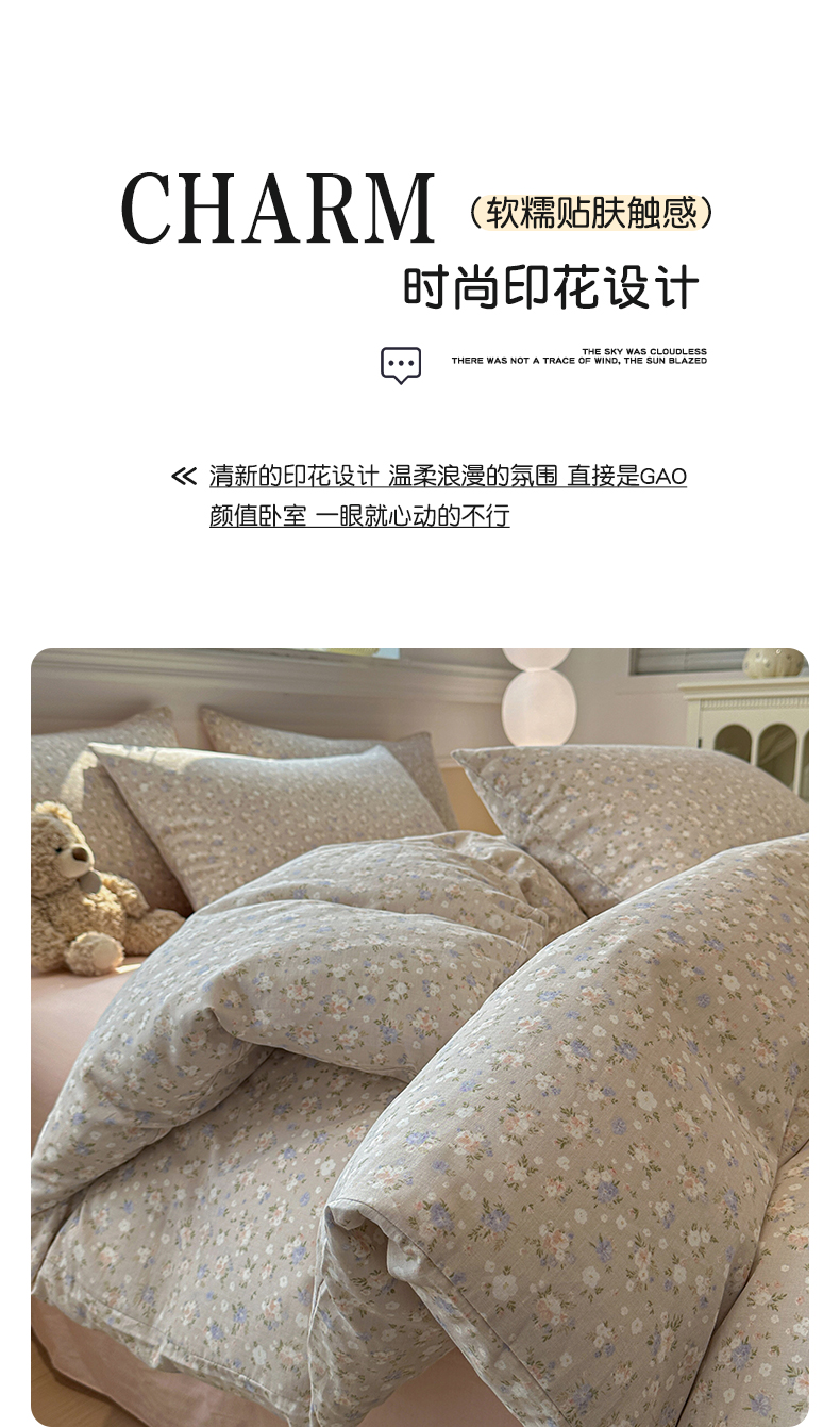 当前位置: 91家纺网 > 商品网购 > 床品套件 > 四件套 > 全棉普通四件套 > 忆生活家纺 2026春夏新款A类全棉纯棉有氧双层纱小清新四件套 云樱-卡其
