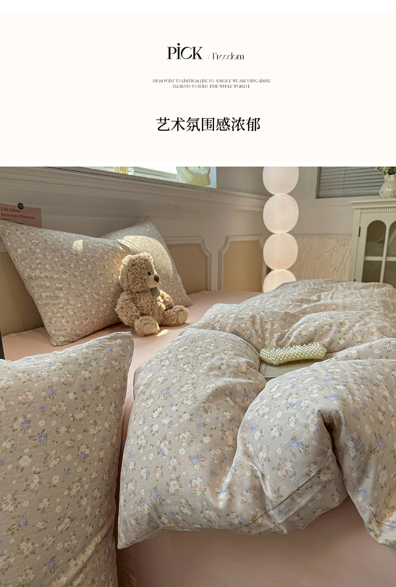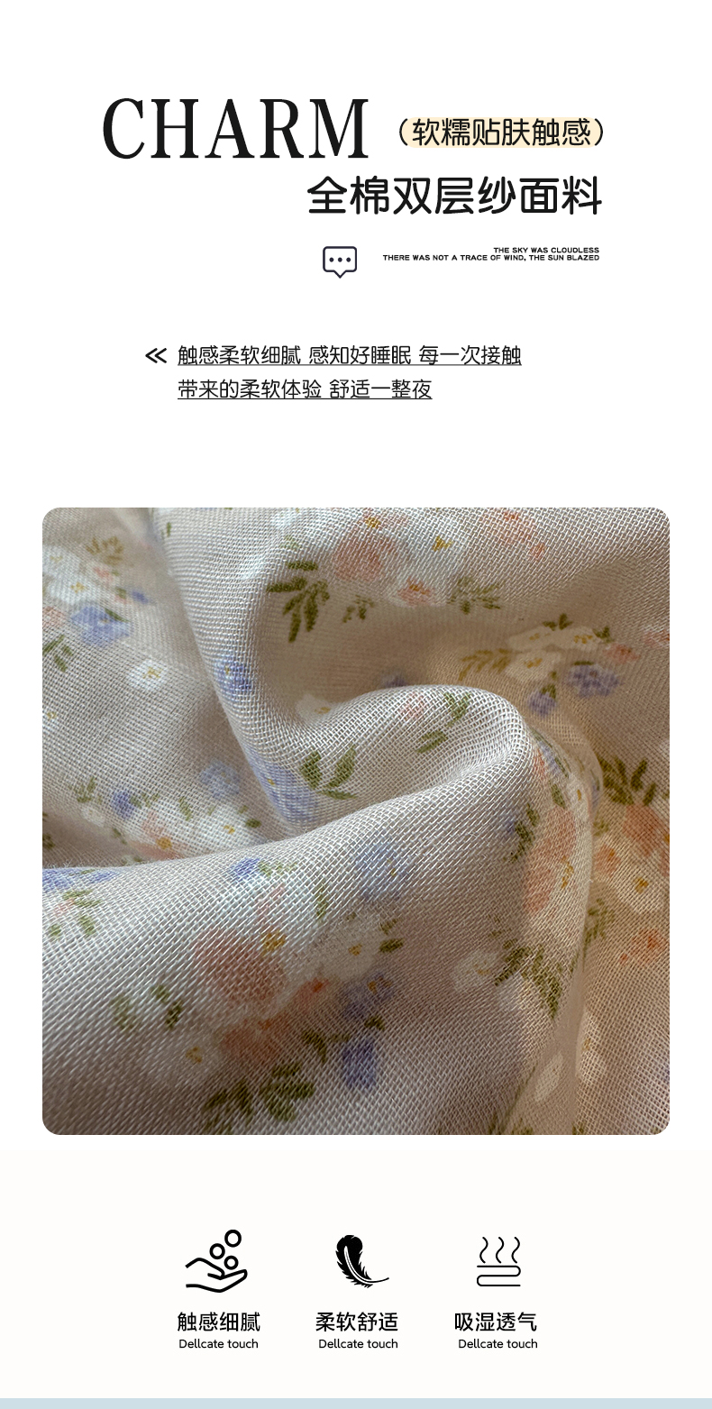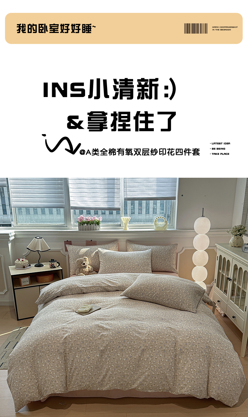 当前位置: 91家纺网 > 商品网购 > 床品套件 > 四件套 > 全棉普通四件套 > 忆生活家纺 2026春夏新款A类全棉纯棉有氧双层纱小清新四件套 云樱-卡其