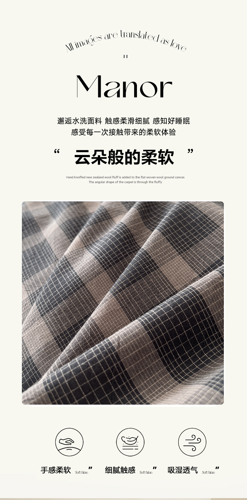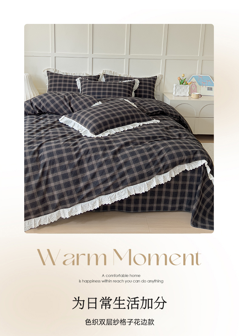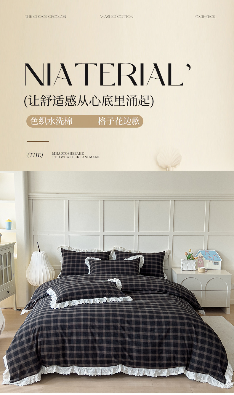 (总)花香四季家纺 2026新款简约全棉高织高密色织纯棉水洗棉四件套,黑巧,焦糖,慕斯,奶茶,组合图仅供参考 不可下单,黑桃A