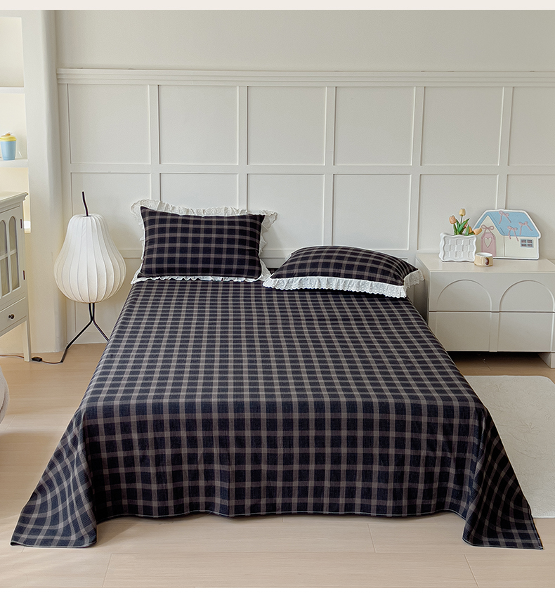 (总)花香四季家纺 2026新款全棉色织水洗棉格子系列纯棉单双人床单单件,黑巧,黑桃A,焦糖,慕斯,奶茶