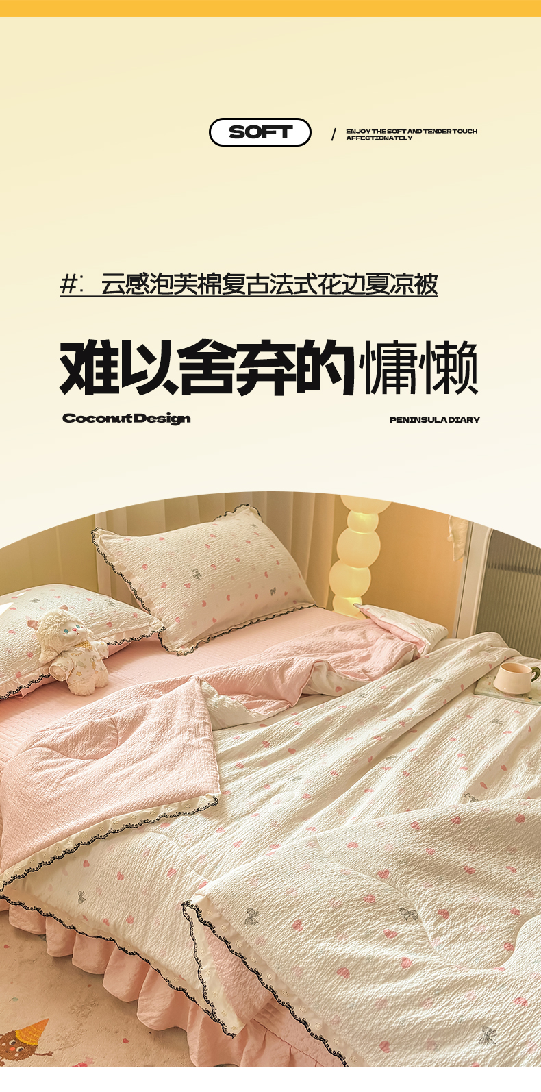 • 91家纺网 家纺一手货源 找家纺 慕希家纺 2026新款云感泡芙棉夏被夏凉被空调被四件套 爱如星辰