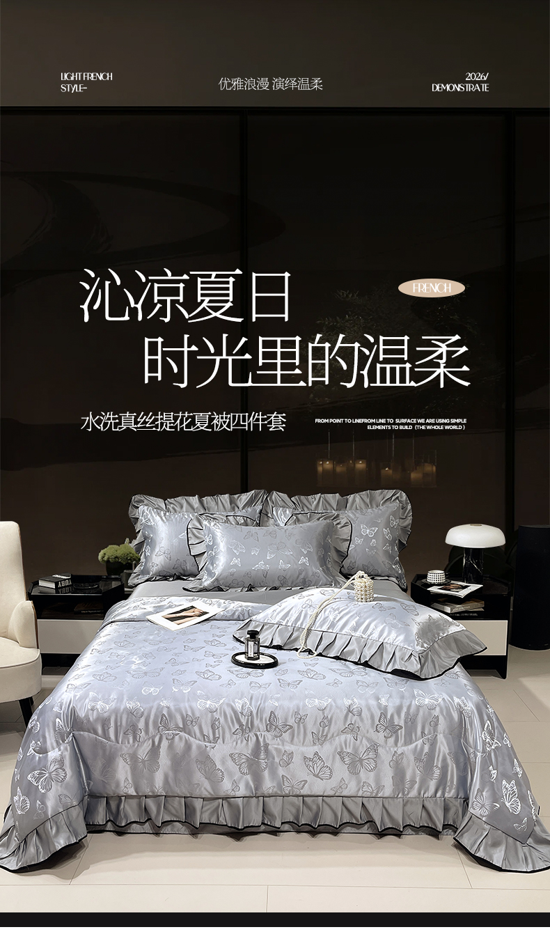 慕希家纺 2026新款水洗真丝提花夏被夏凉被空调被-蝶序系列 组合图