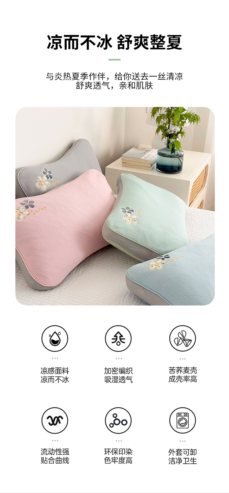 商品名称:蔻眠 凉感丝花眠立体荞麦护颈枕芯夏季凉豆豆枕头 主图