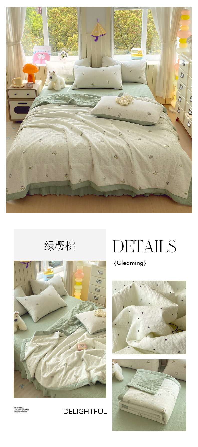 (总)莱米家纺 2026新款云感泡泡双层纱手包边夏被夏凉被空调被床盖四件套,费尔岛-红,费尔岛-咖,费尔岛-紫,海底星星,卡其波点,绿花枝叶,绿樱桃,兔兔之家,星星人,紫色爱心,棕蝴蝶结