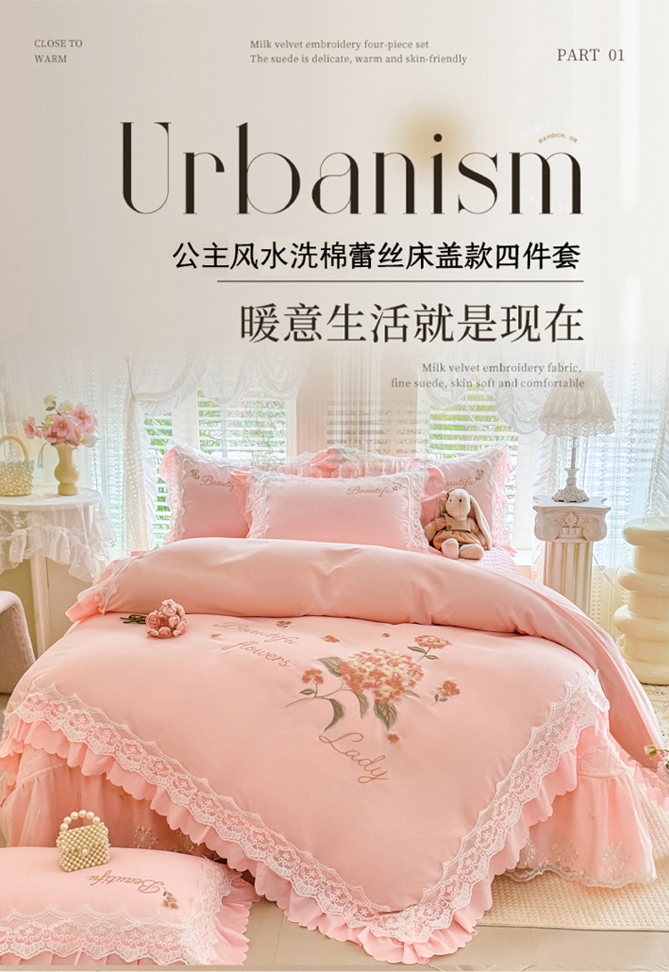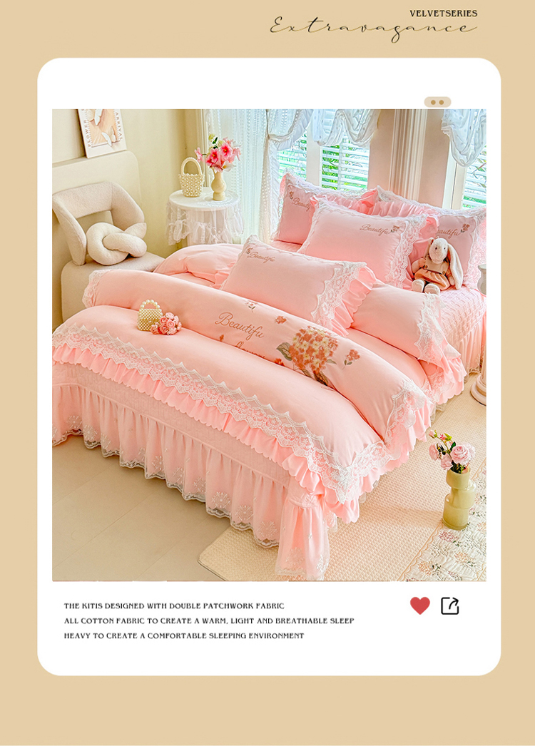 (总)苏米娜家纺SUMINA 2025新款230g高克重韩版立体盘花牛奶蚕丝绒绣花四件套床裙款被套-洛丽塔系列,洛丽塔-嫩黄 ,洛丽塔-香芋紫,洛丽塔-珍珠粉, 洛丽塔-婴儿蓝