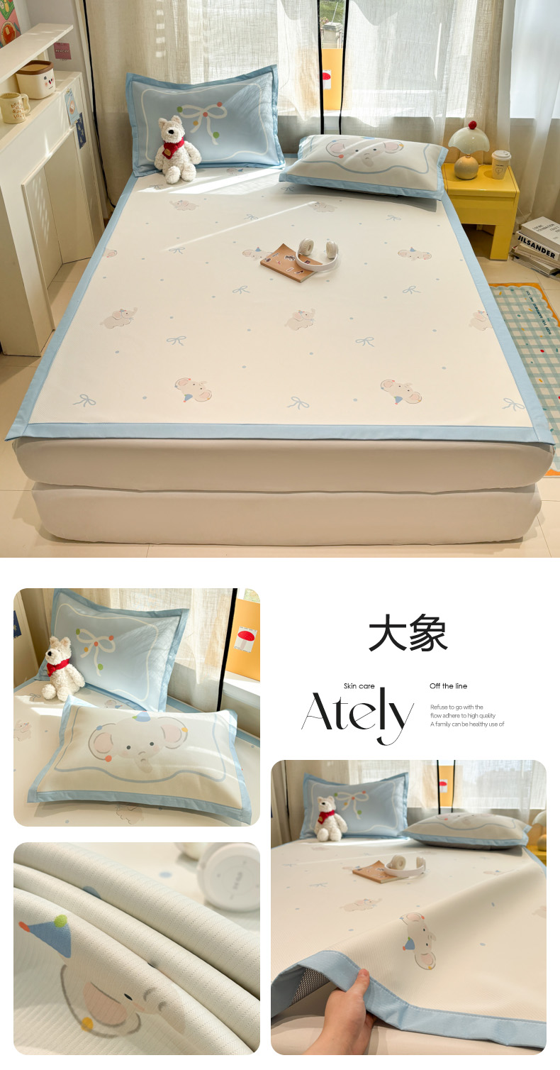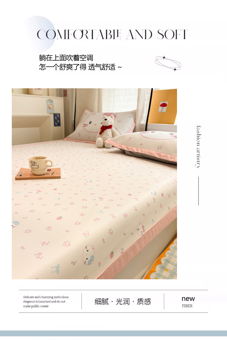商品名称:慕尚家纺 2026春夏新款可水洗斜纹凉豆豆印花凉感席凉席席子 蝴蝶结熊
