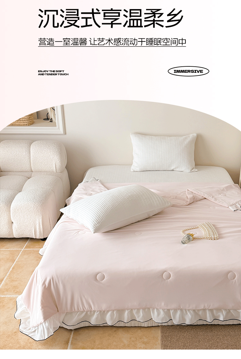 (总)吾欢心 2025新款公主风雪纺边四季通用夹棉床盖,床盖白,床盖粉,床盖黄,床盖咖,床盖绿,床盖抹茶绿,床盖紫