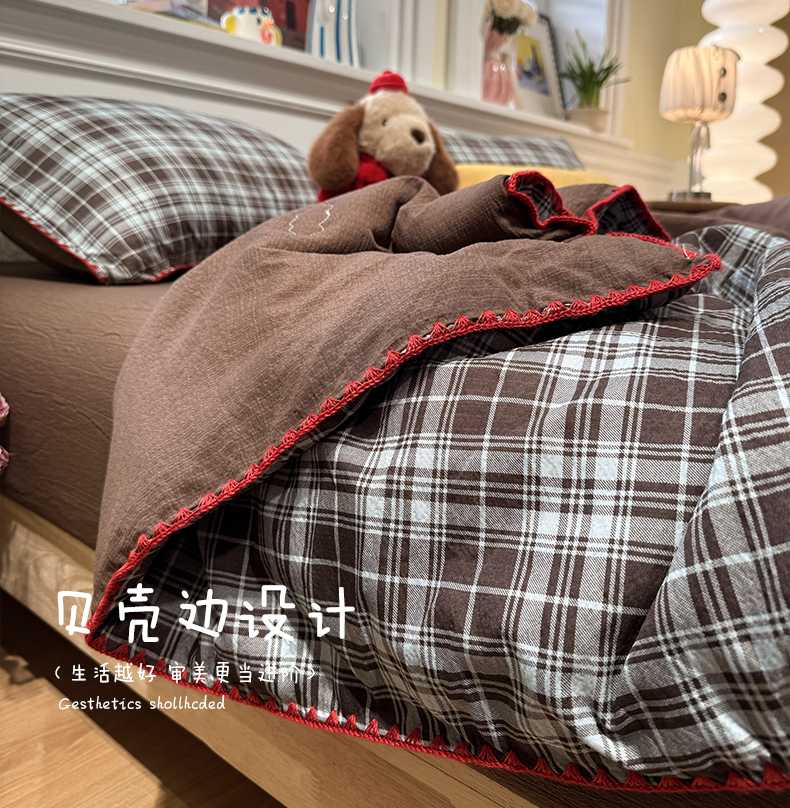水墨江南 2026新款云感皱皱纱贝壳边夏被四件套 夏被-布朗尼咖