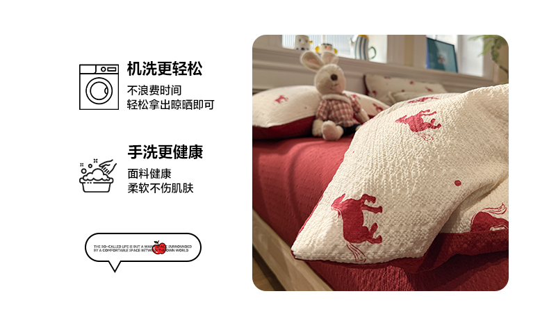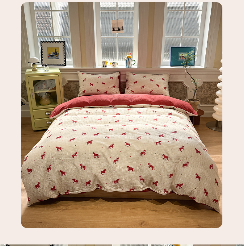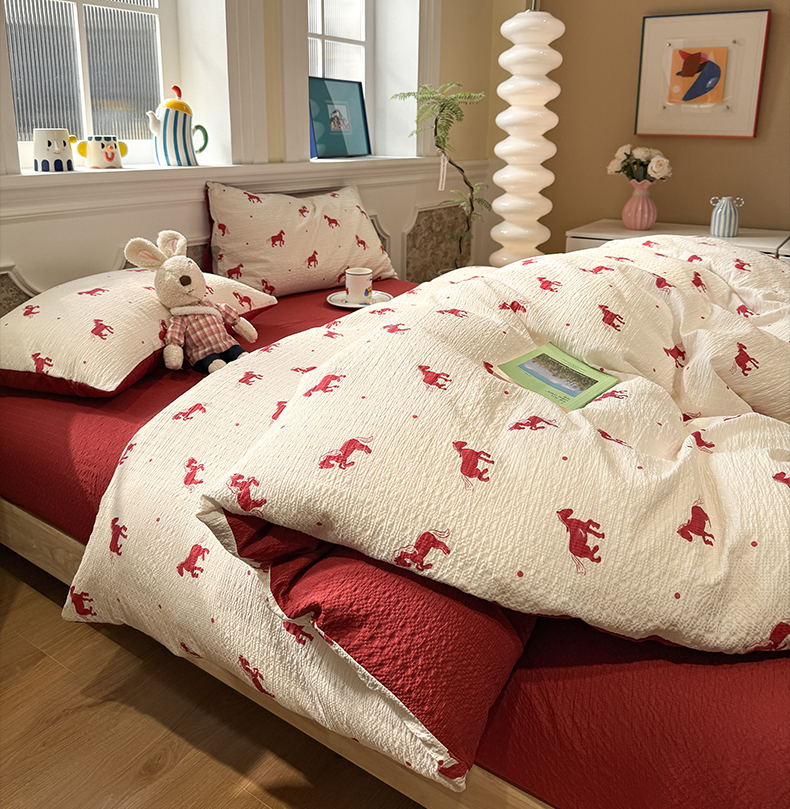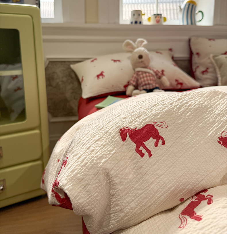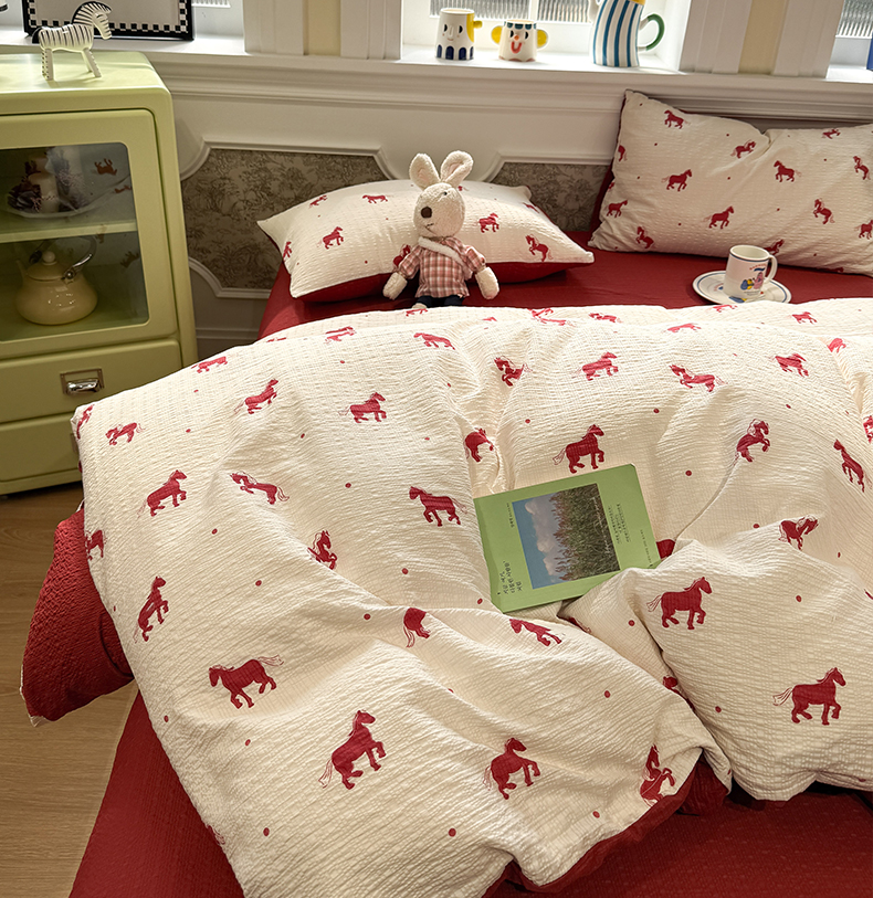 当前位置: 91家纺网 > 商品网购 > 床品套件 > 四件套 > 化纤普通四件套 > 水墨江南 2026直播热款泡芙棉双层纱四件套 红色小马