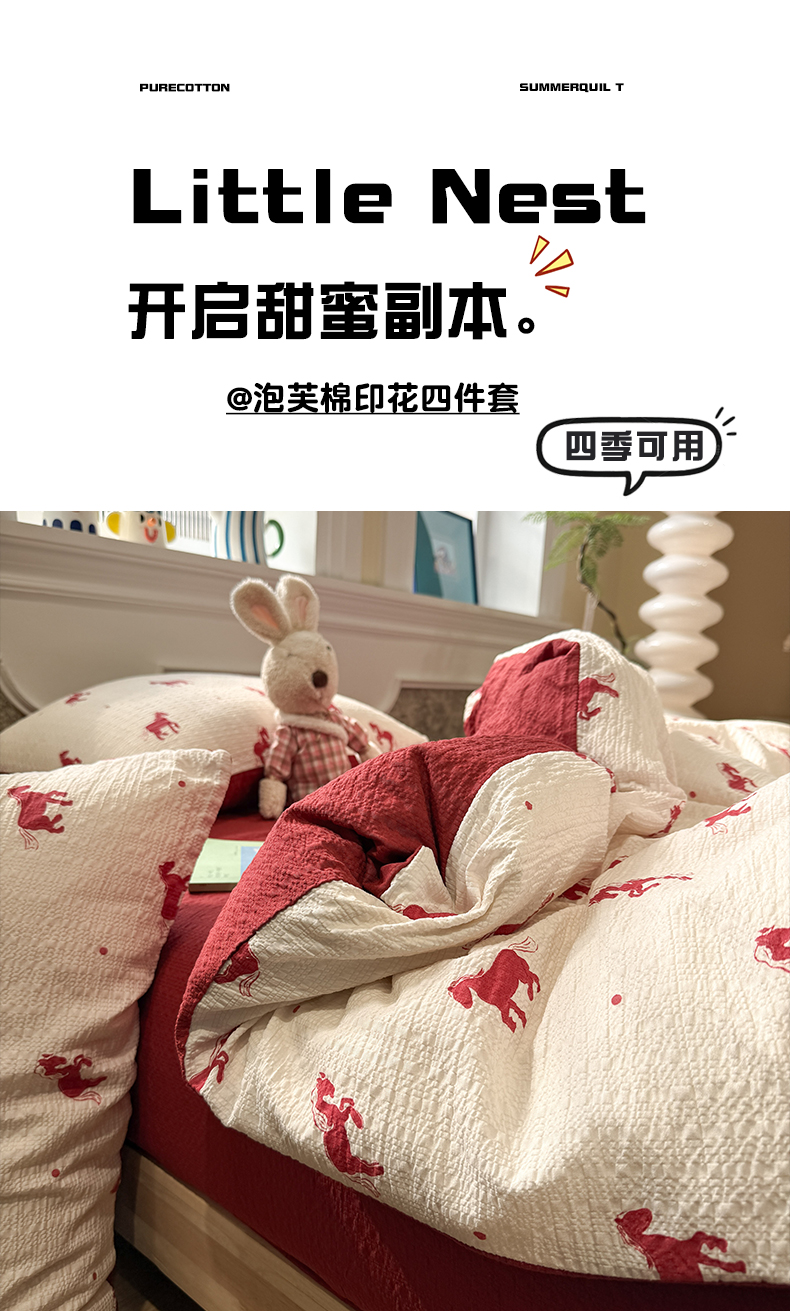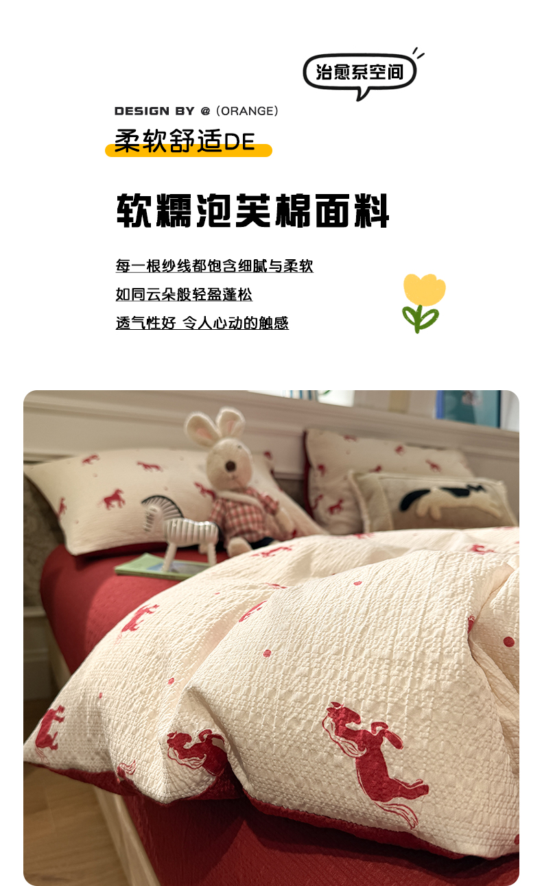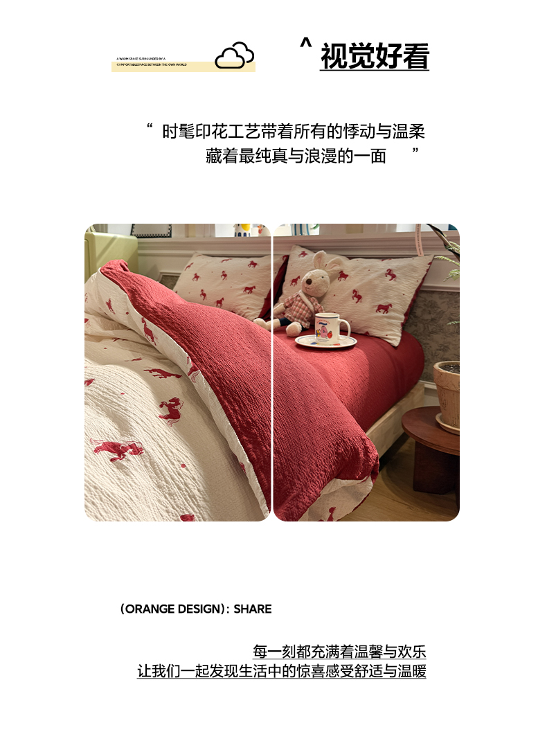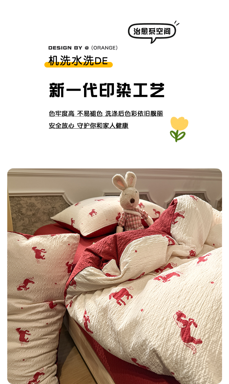 当前位置: 91家纺网 > 商品网购 > 床品套件 > 四件套 > 化纤普通四件套 > 水墨江南 2026直播热款泡芙棉双层纱四件套 红色小马