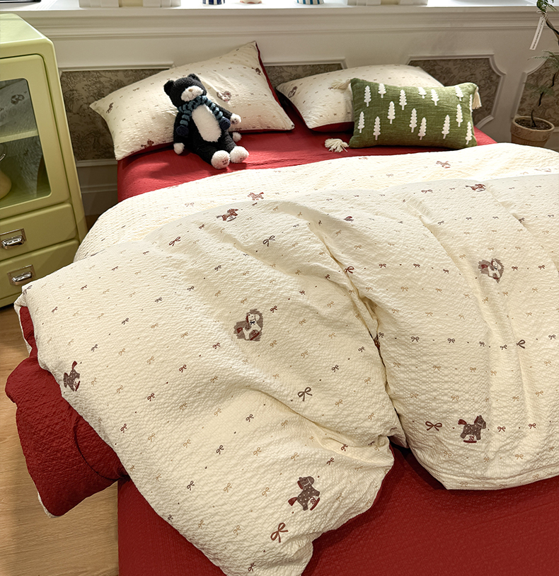 当前位置: 91家纺网 > 商品网购 > 床品套件 > 四件套 > 化纤普通四件套 > 水墨江南 2026直播热款泡芙棉双层纱四件套 木马甜心