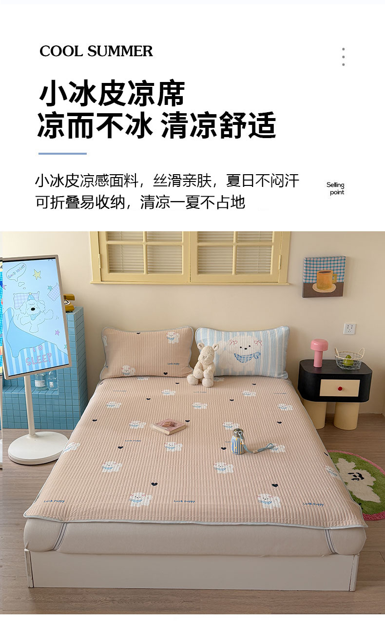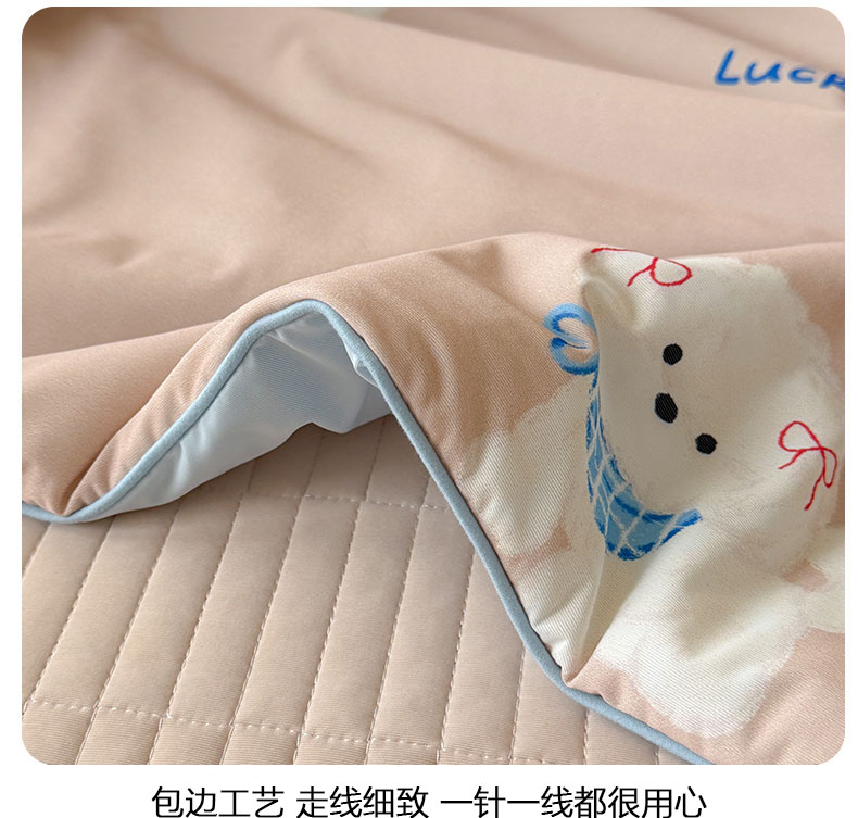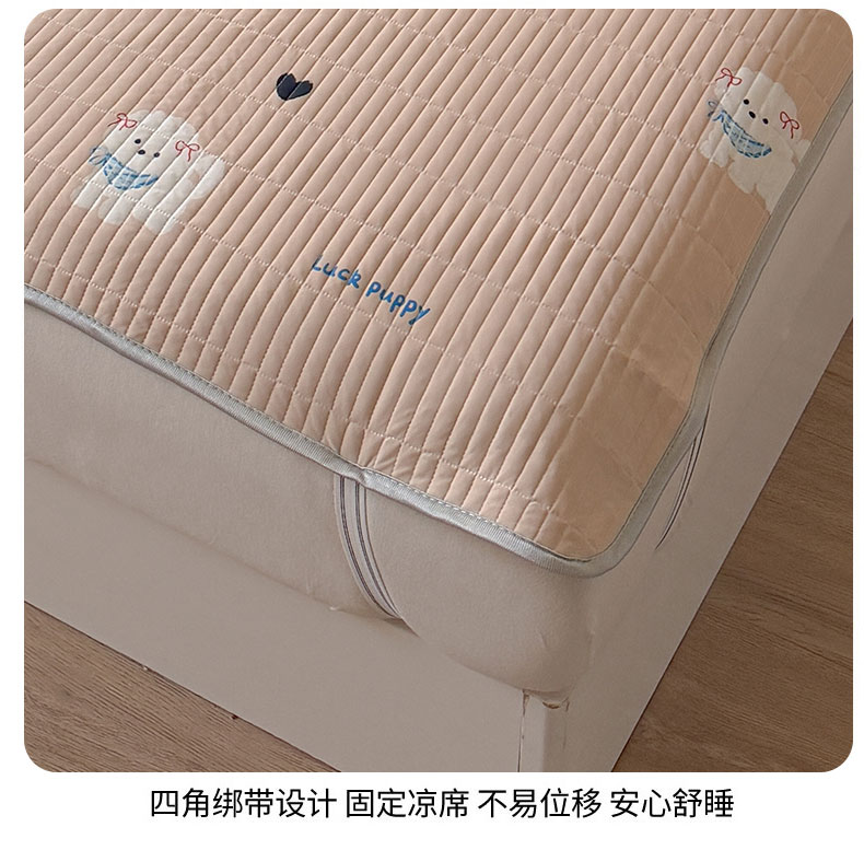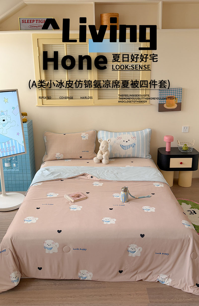 • 91家纺网 家纺一手货源 找家纺 桃子家居 2026新款A类小清新卡通数码印花混搭小冰皮夏被夏凉被空调被席子凉席四件套 小冰皮-奶咖小狗