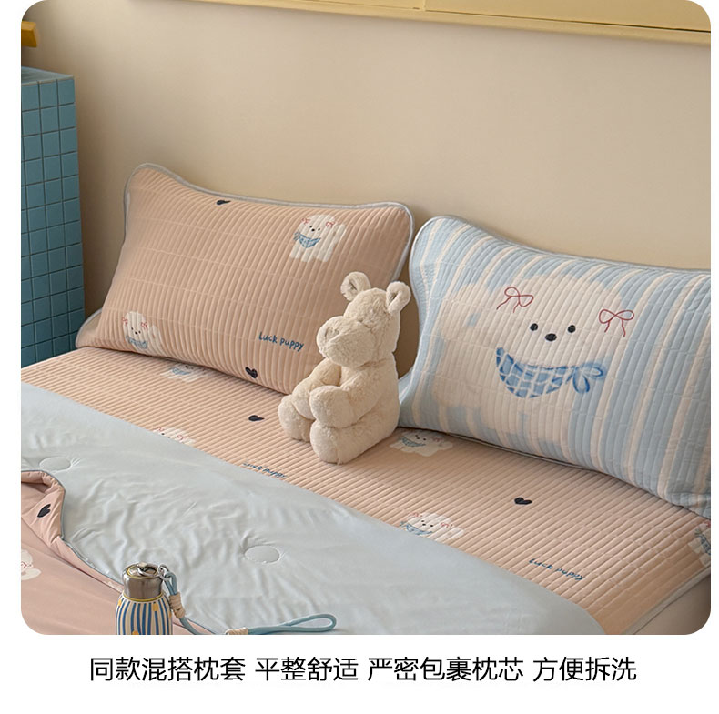 当前位置: 91家纺网 > 商品网购 > 被子 > 夏被 > 桃子家居 2026新款A类小清新卡通数码印花混搭小冰皮夏被夏凉被空调被席子凉席四件套 小冰皮-奶咖小狗