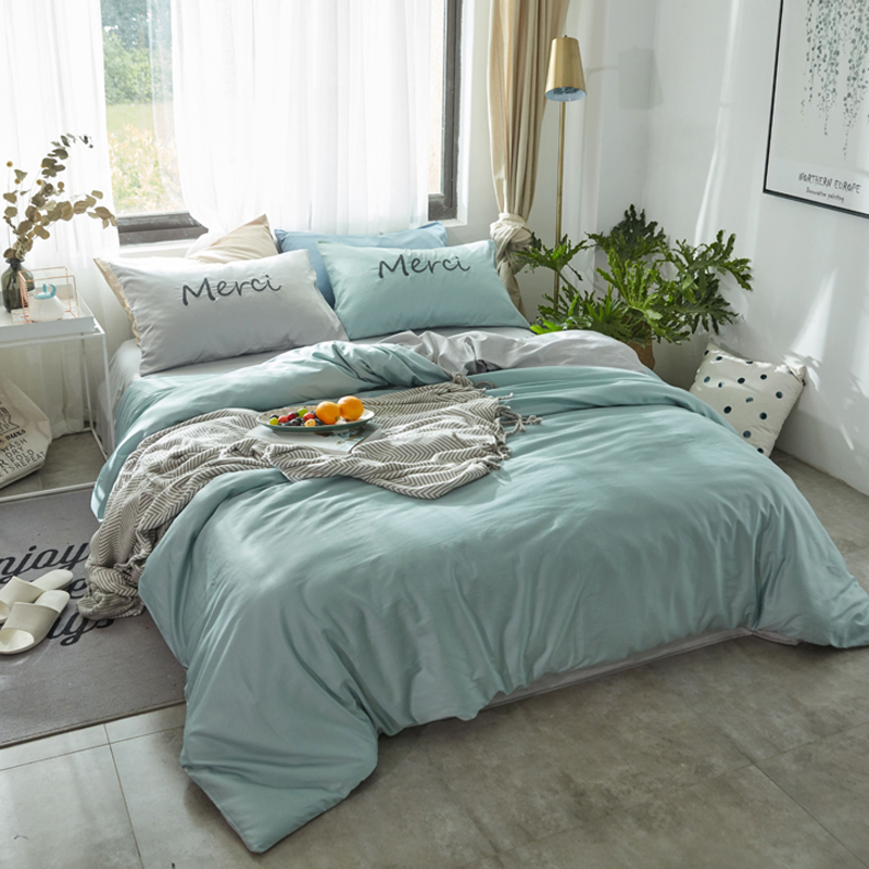 优然居家纺 60长绒棉文艺双拼撞色刺绣系列四件套校园回忆